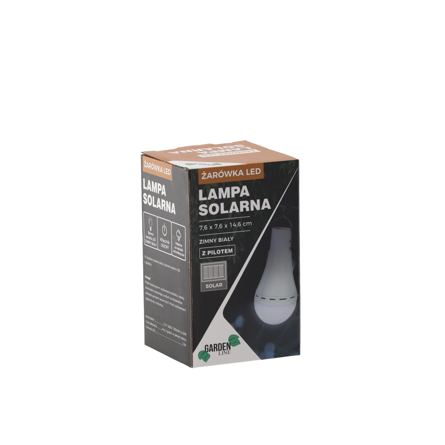 Vgrajena Li‑ion baterija 3,7 V (18650) 1200 mAh zagotavlja stabilno delovanje, 12 W LED pa ustvarja jasno, hladno belo svetlobo za varno gibanje in orientacijo po mraku. Polikristalni panel skrbi za učinkovito polnjenje podnevi.