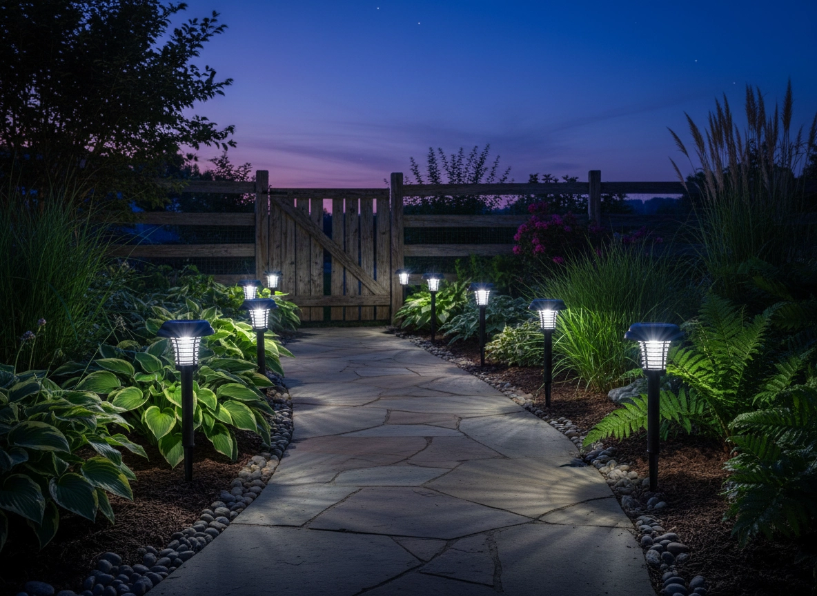 Bela LED zagotavlja prijetno osvetlitev poti in gredic, medtem ko vijolična LED učinkovito privablja žuželke. Manj komarjev, več udobja ob večernem posedanju.