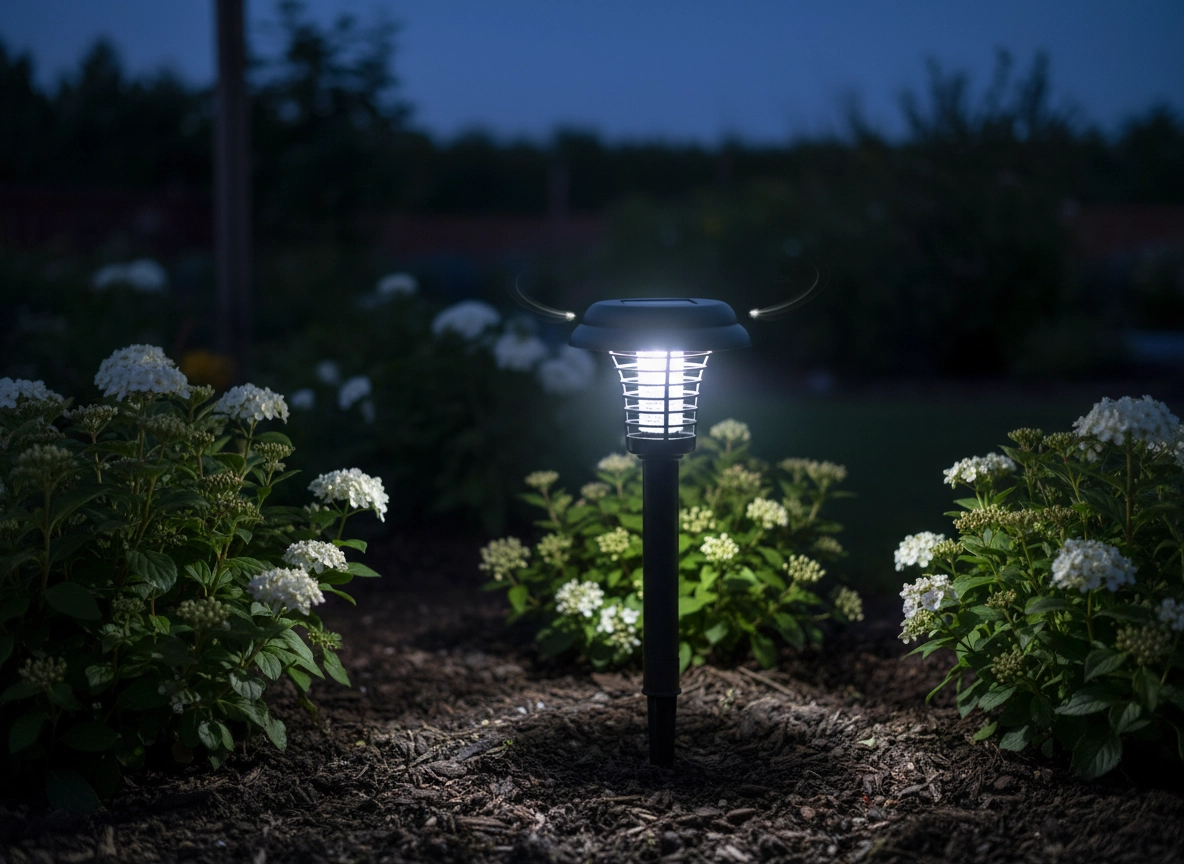 Solarna svetilka z lovilcem insektov prinaša udobje in mir na vsak vrt. Podnevi se polni s pomočjo polikristalnega solarnega panela, po temi pa se samodejno prižge – bela LED za prijetno osvetlitev in vijolična LED za učinkovito privabljanje žuželk. Zahvaljujoč zaščiti IP44 brez težav prenese običajne vremenske razmere.