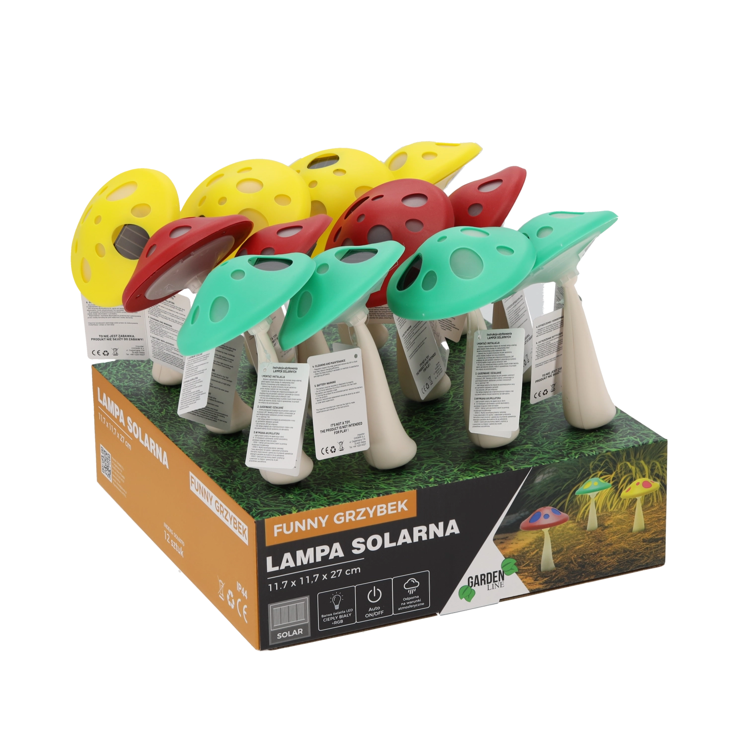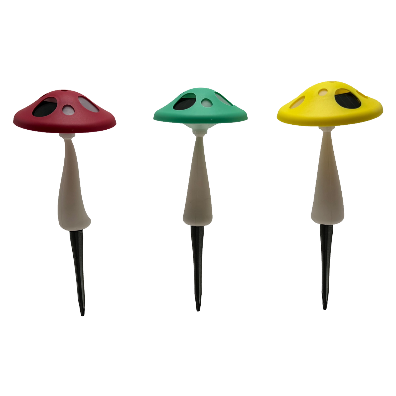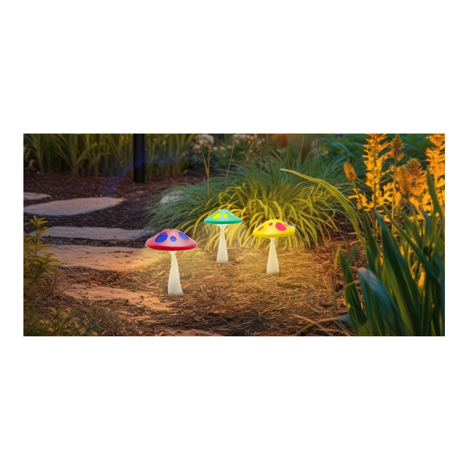 Očarljive sončne svetilke v obliki gobe spremenijo vaš vrt, teraso ali cvetlične grede v prijeten prostor s pravljičnim vzdušjem. Vgrajeni 1× bela LED in 1× RGB LED poskrbita za nežno belo osvetlitev in barvite učinke. Svetilka se podnevi polni s sončno energijo in se po mraku samodejno prižge.