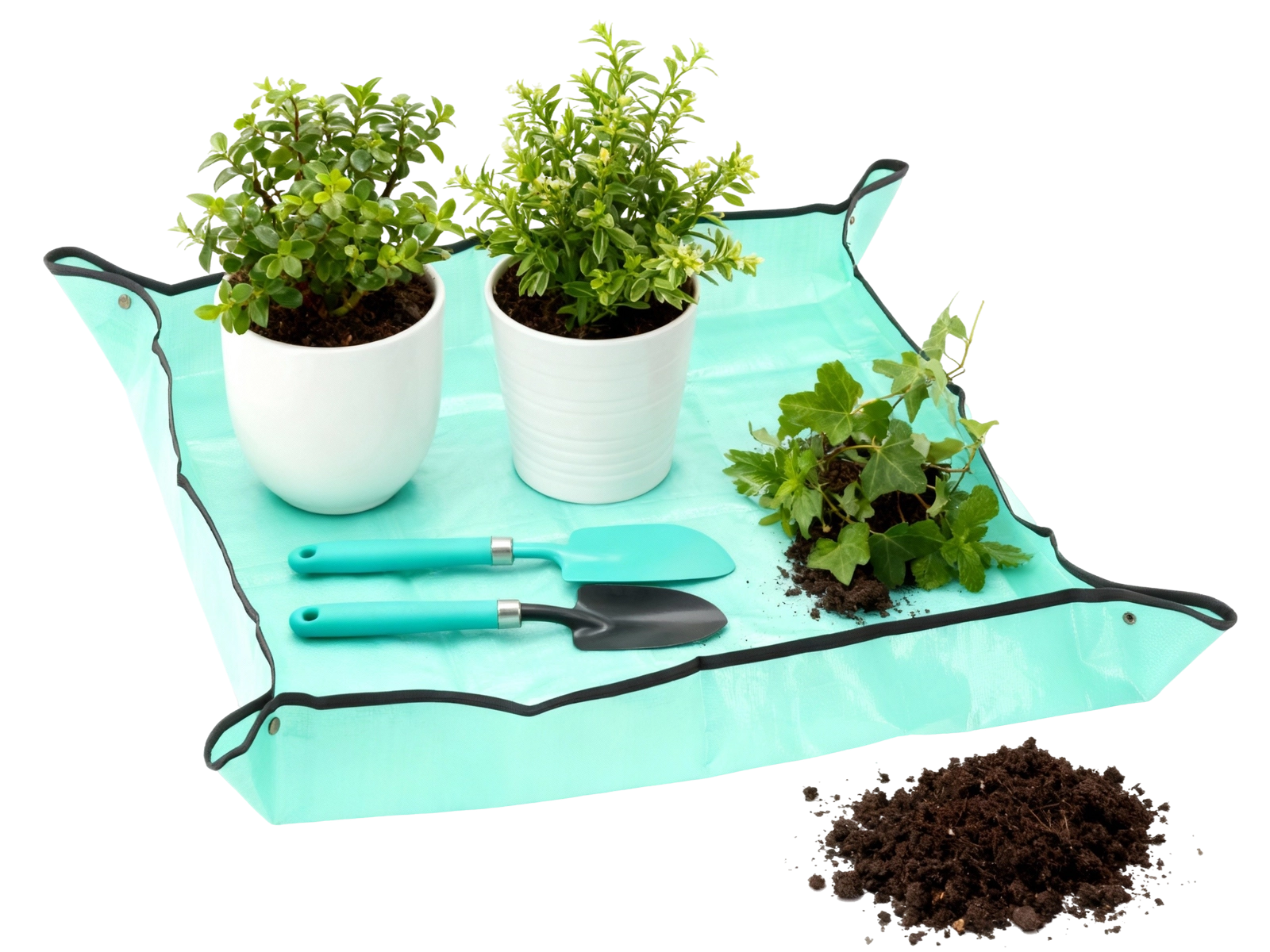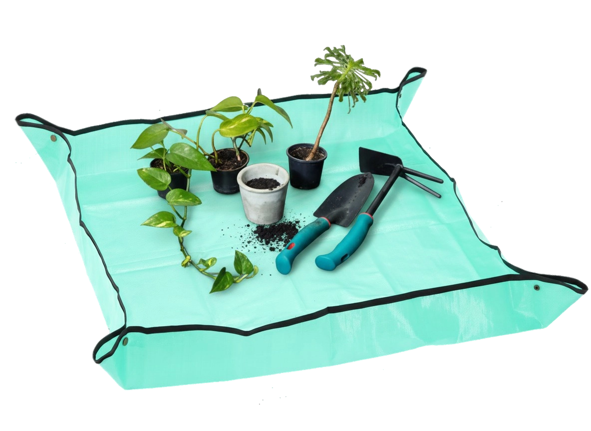 Brez nereda pri negi sobnih rastlin. Ta velika podloga za presajanje 100 × 100 cm s praktičnimi zapenjanji v kotih ustvari plitek »rezervoar«, ki zadrži substrat, zastirko in vodo na mestu. Idealna za presajanje, delitev rastlin, mešanje substrata in drobna vrtnarska opravila v notranjih prostorih.