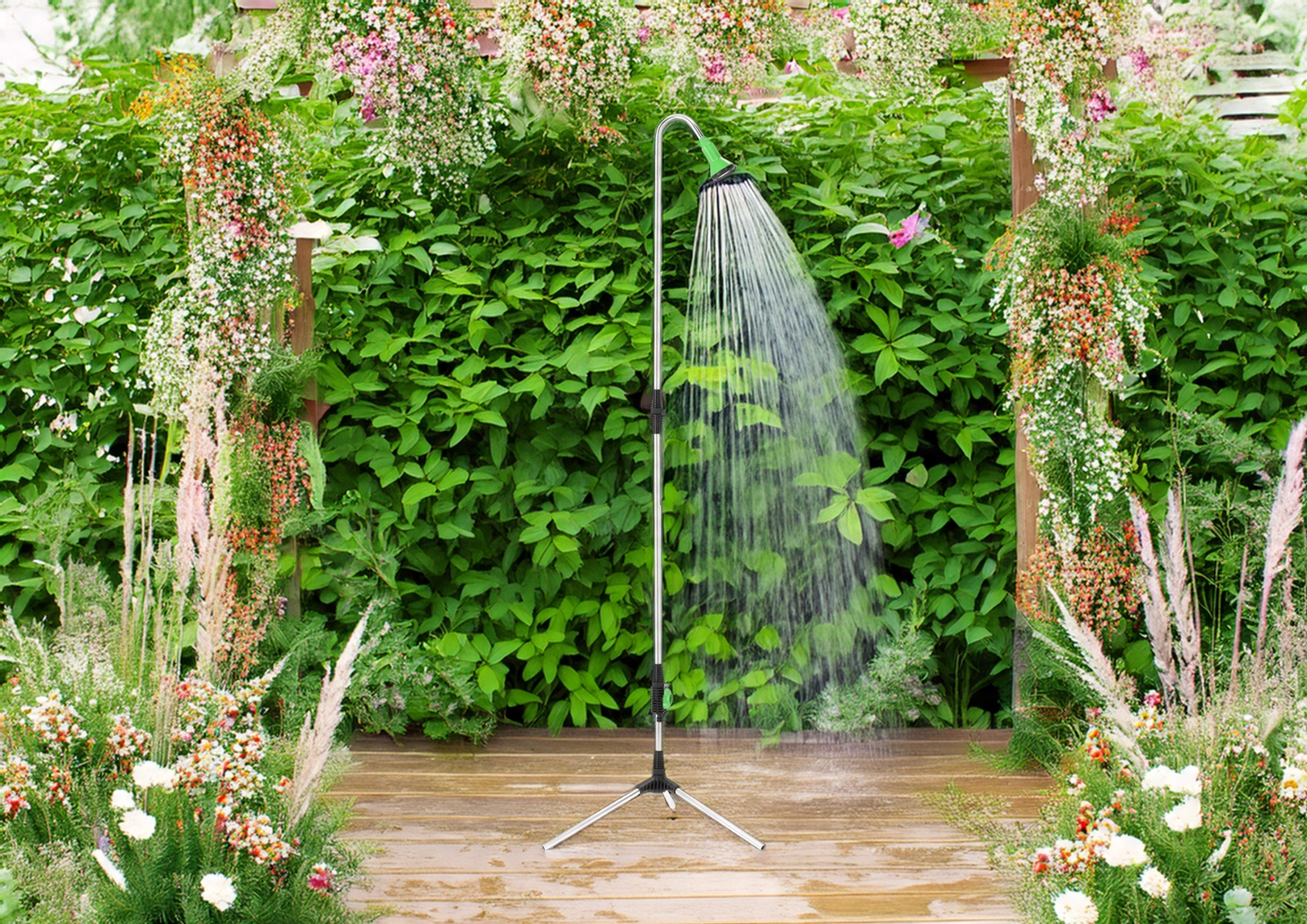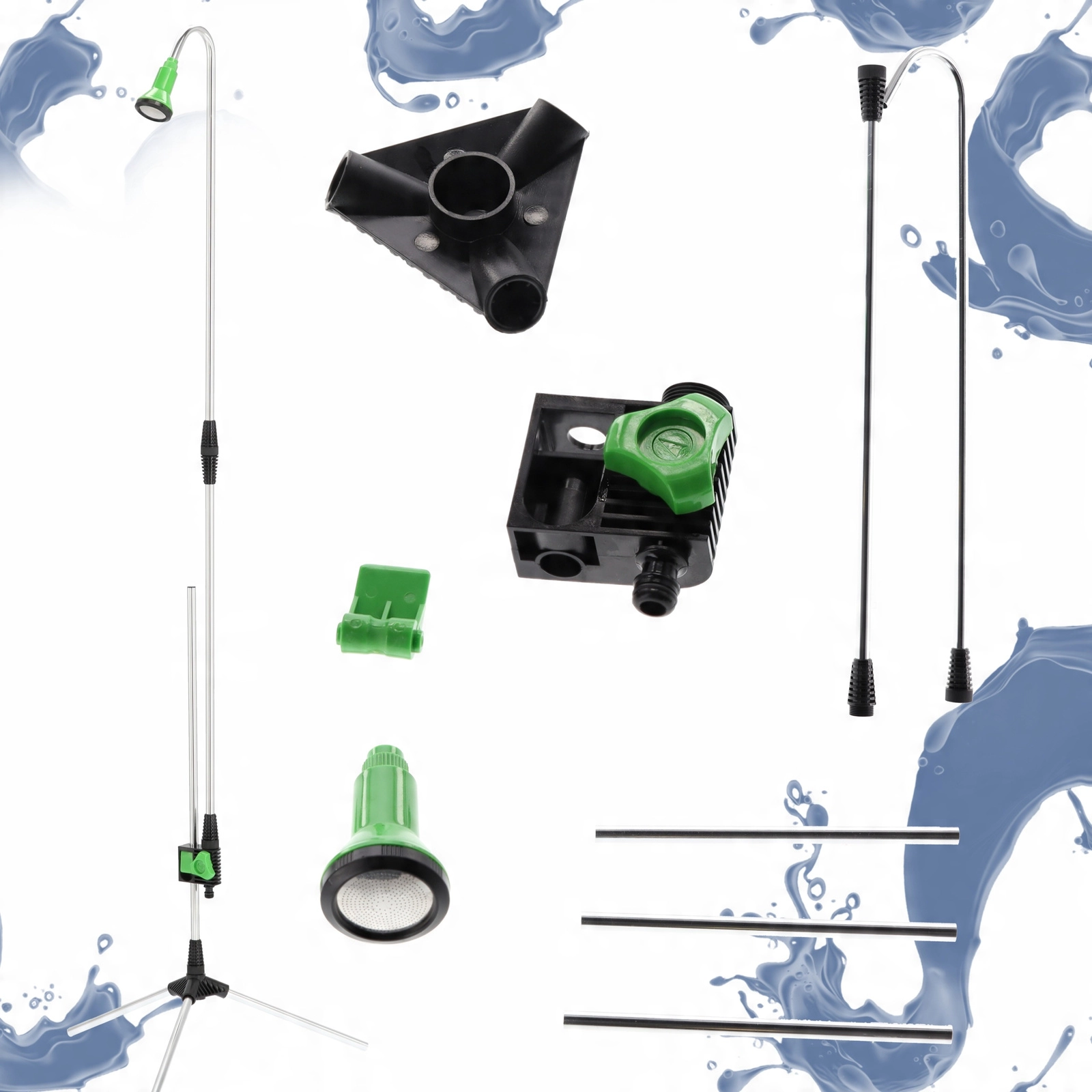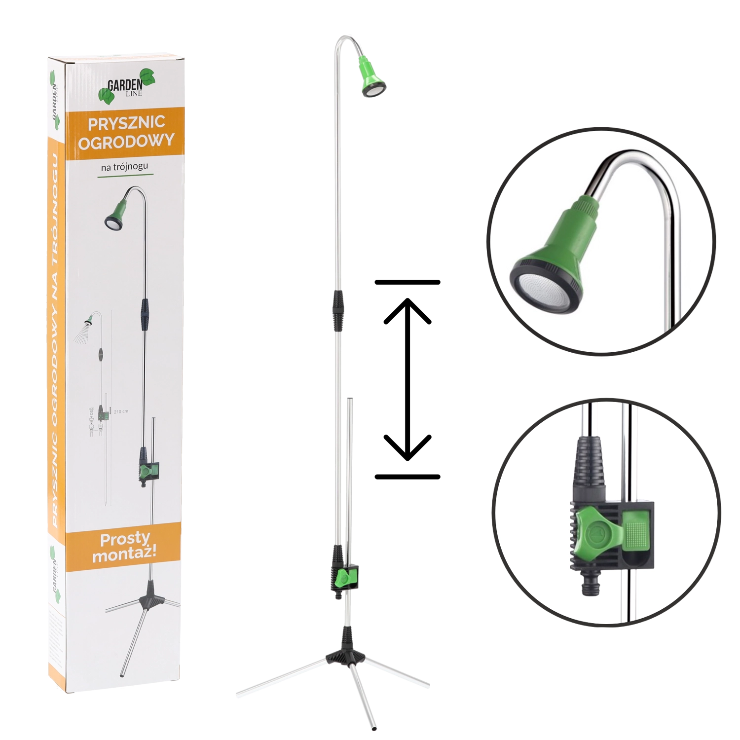 Vrtna prha na trinožcu je praktična rešitev za vroče dni in hitro izpiranje po delu na vrtu. Stabilno trinožno stojalo zagotavlja trdno postavitev na različnih površinah, tekoče nastavljanje višine pa prilagodi curek vode otrokom in odraslim. Priklop je opravljen v hipu – zadostuje standardna hitra spojka za vrtno cev.