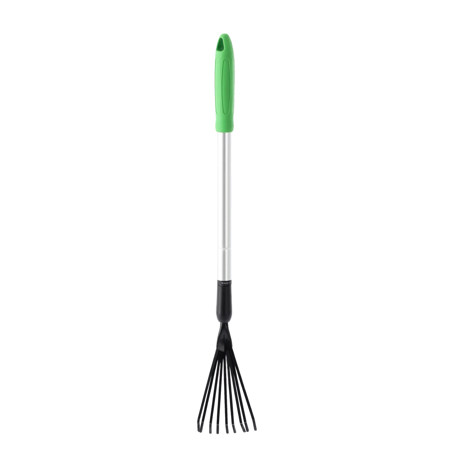 Pospešite in izboljšajte natančnost čiščenja gredic in trat. Teleskopske grablje s kompaktno glavo zlahka dosežejo tudi ozke prostore, med grmi ali do robov gredic. Lahka zasnova povečuje udobje pri delu, nastavljiva dolžina pa omogoča prilagoditev orodja vaši postavi.