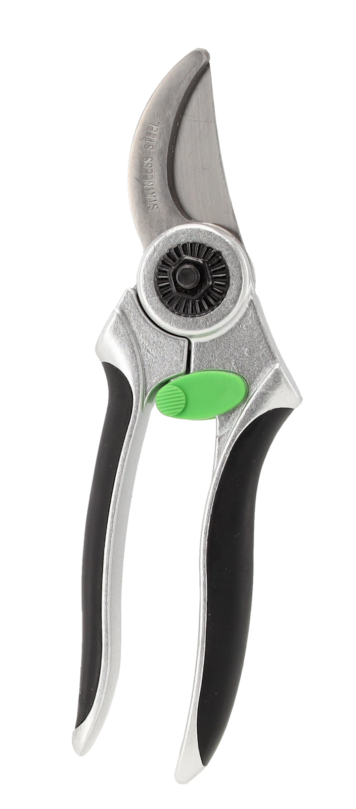 Ergonomske bypass ročne škarje z varnostno zaporo so idealne za natančne reze stebel in manjših vejic. Teksturirani ročaji za zanesljiv oprijem.