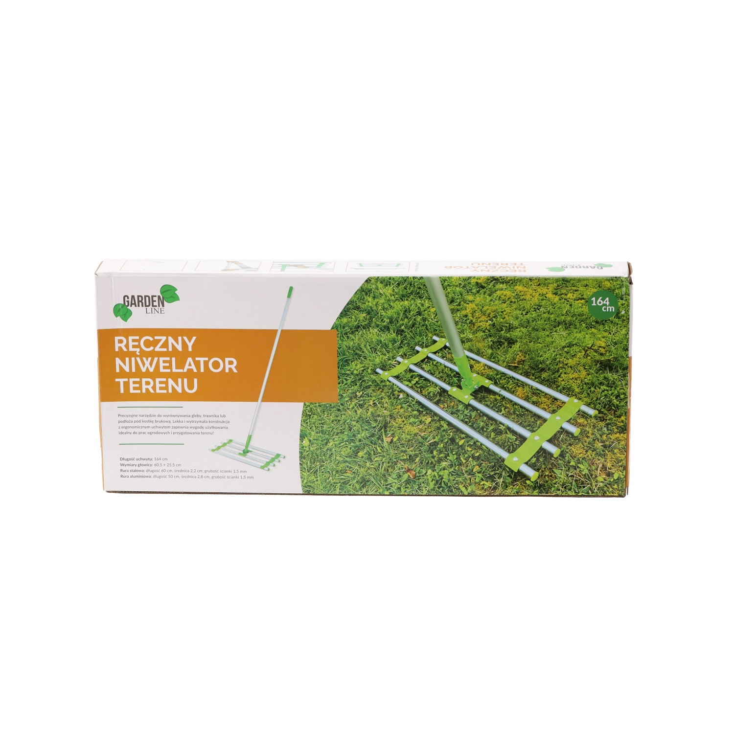 Praktični ročni nivelir terena dolžine 164 cm za hitro in natančno izravnavo zemlje, gramoza ali peska. Ponuja robustno jekleno in aluminijasto konstrukcijo, široko glavo za enakomerno vlečenje ter udobno upravljanje tudi pri daljšem delu.