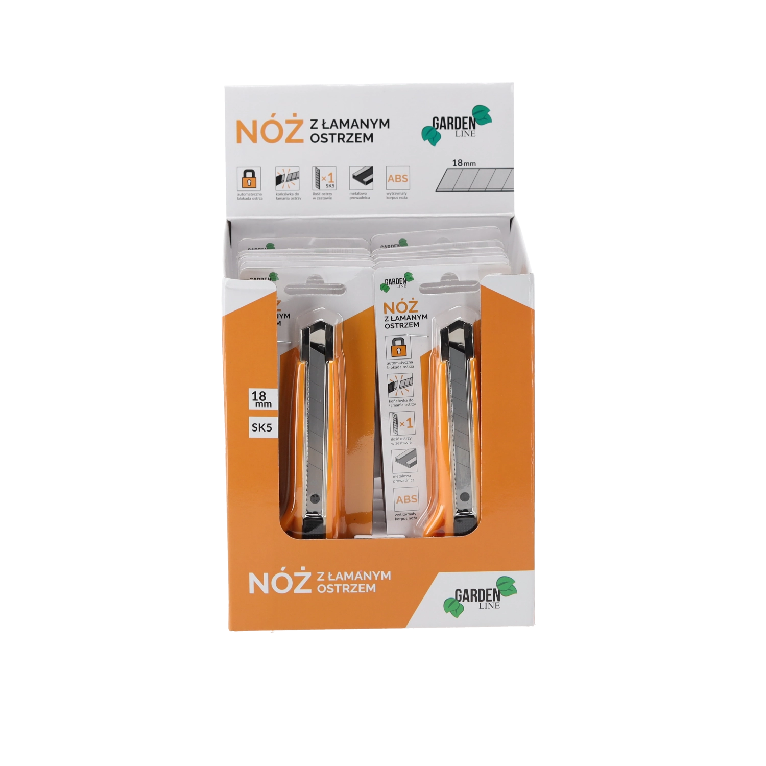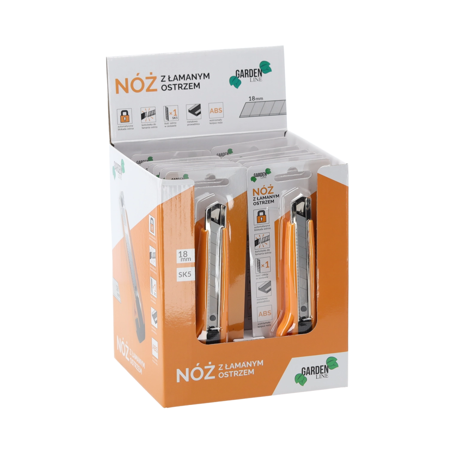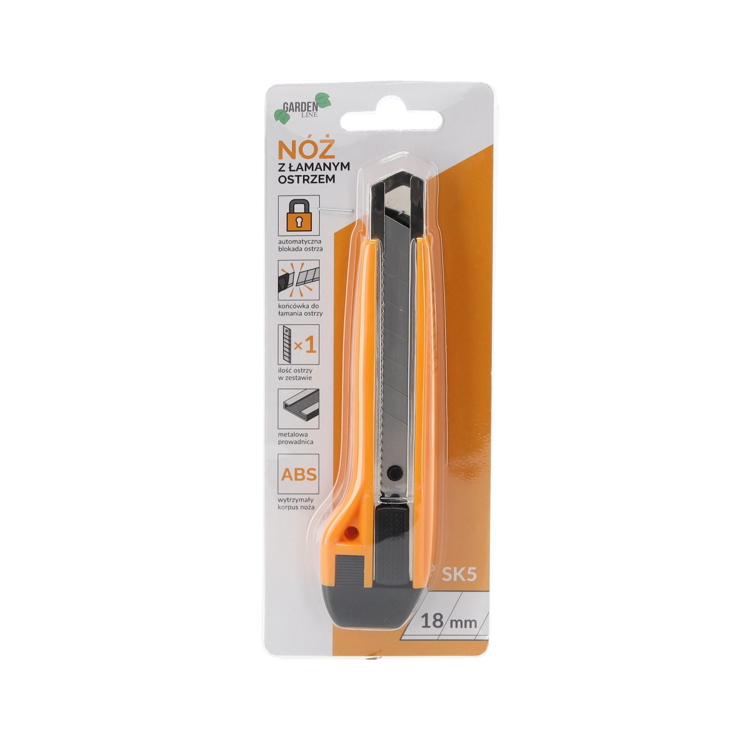 - Pripravljeno za uporabo: eno 18‑mm odlomljivo rezilo SK5 je že prednameščeno.