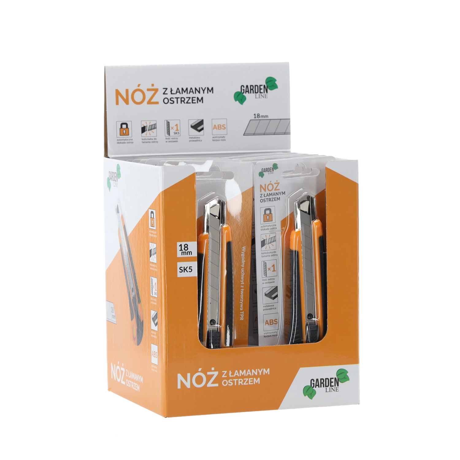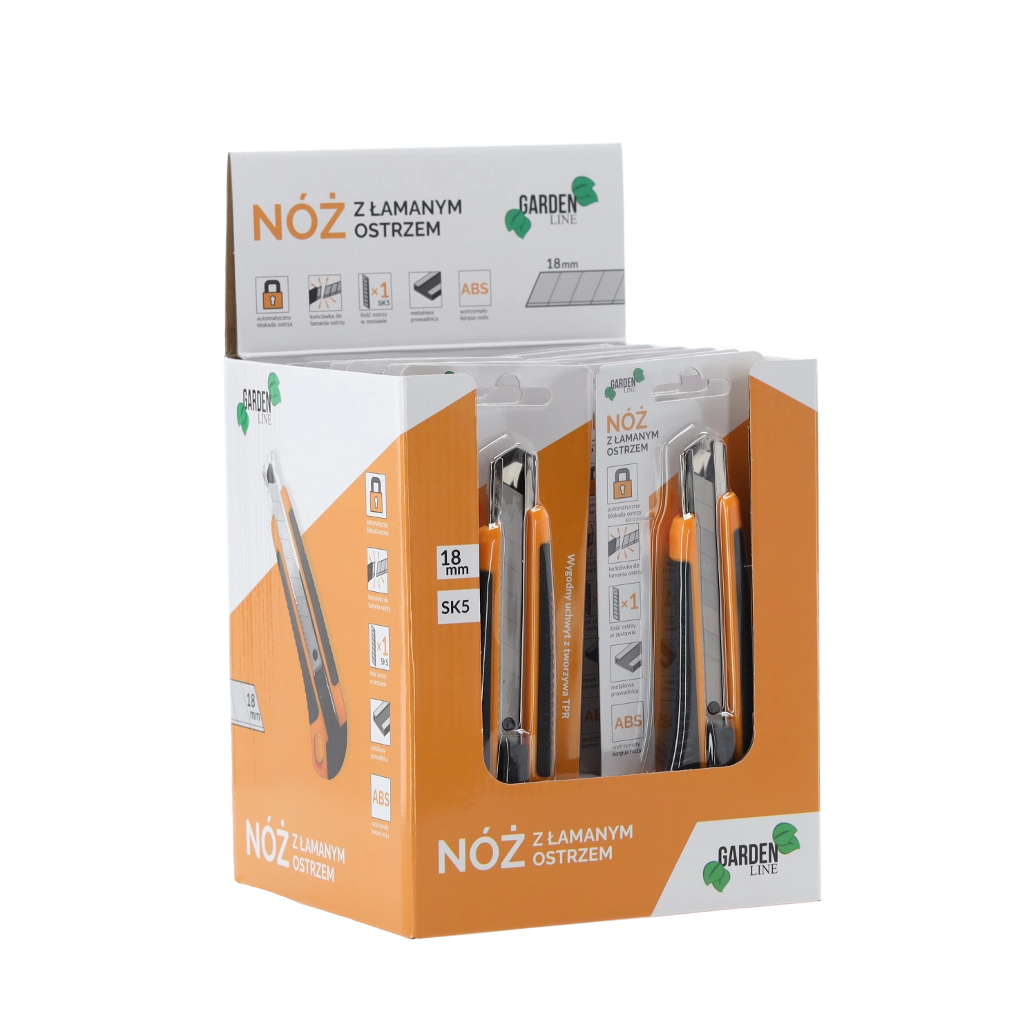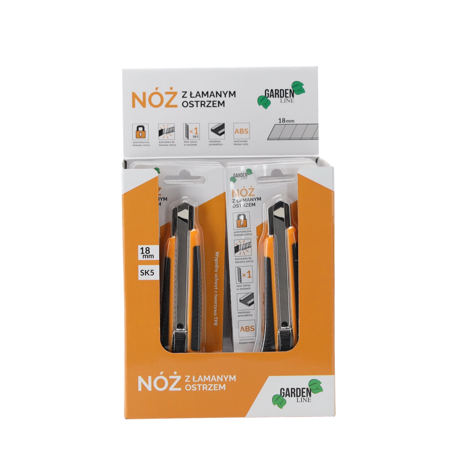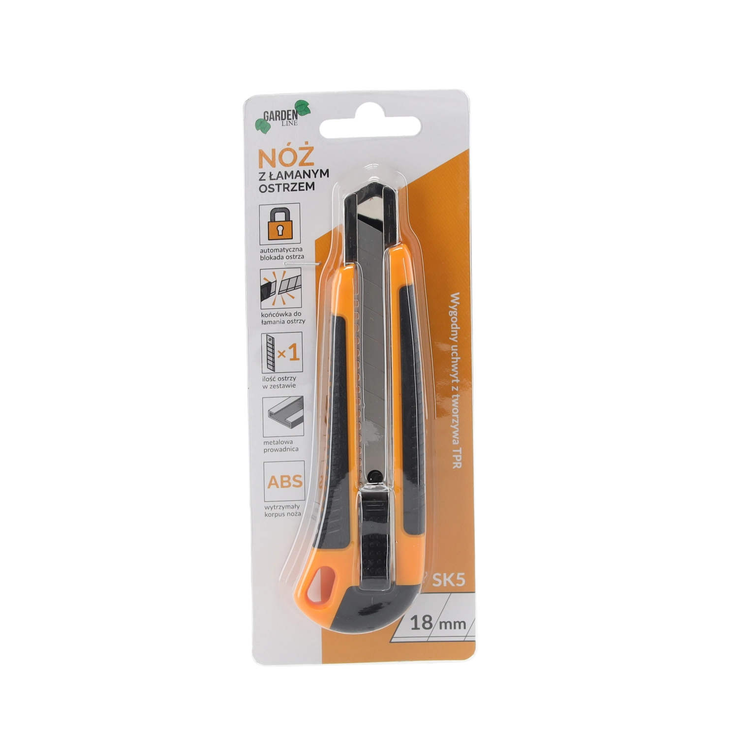 Zanesljiv nož z odlomljivim rezilom 18 mm je idealen za rezanje kartona, folij, preprog in plastike. Robustno ABS ohišje v kombinaciji s proti zdrsni TPR držalom zagotavlja varen oprijem in udobje tudi pri daljšem delu. Samodejna aretacija fiksira rezilo v želenem položaju za varne in natančne reze.