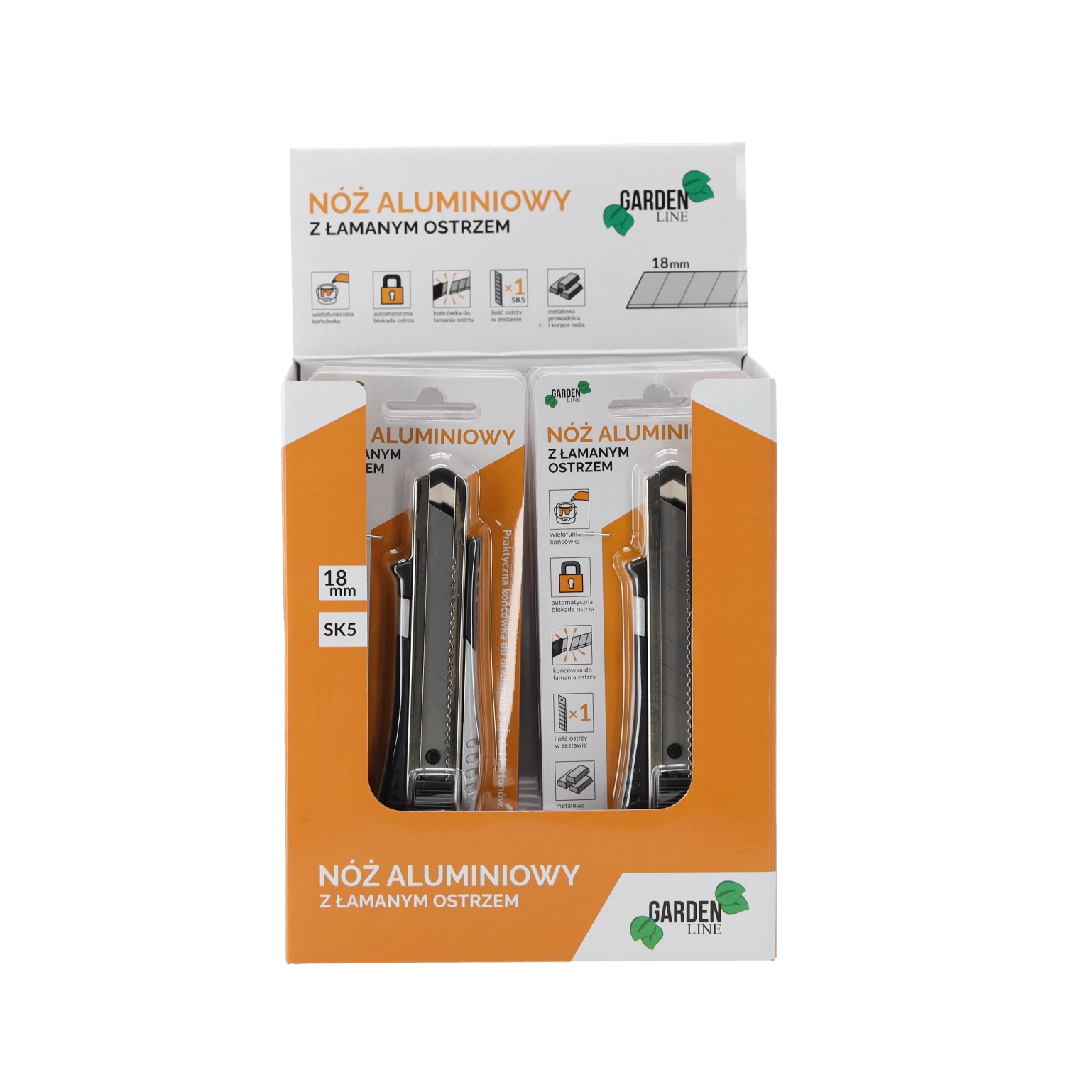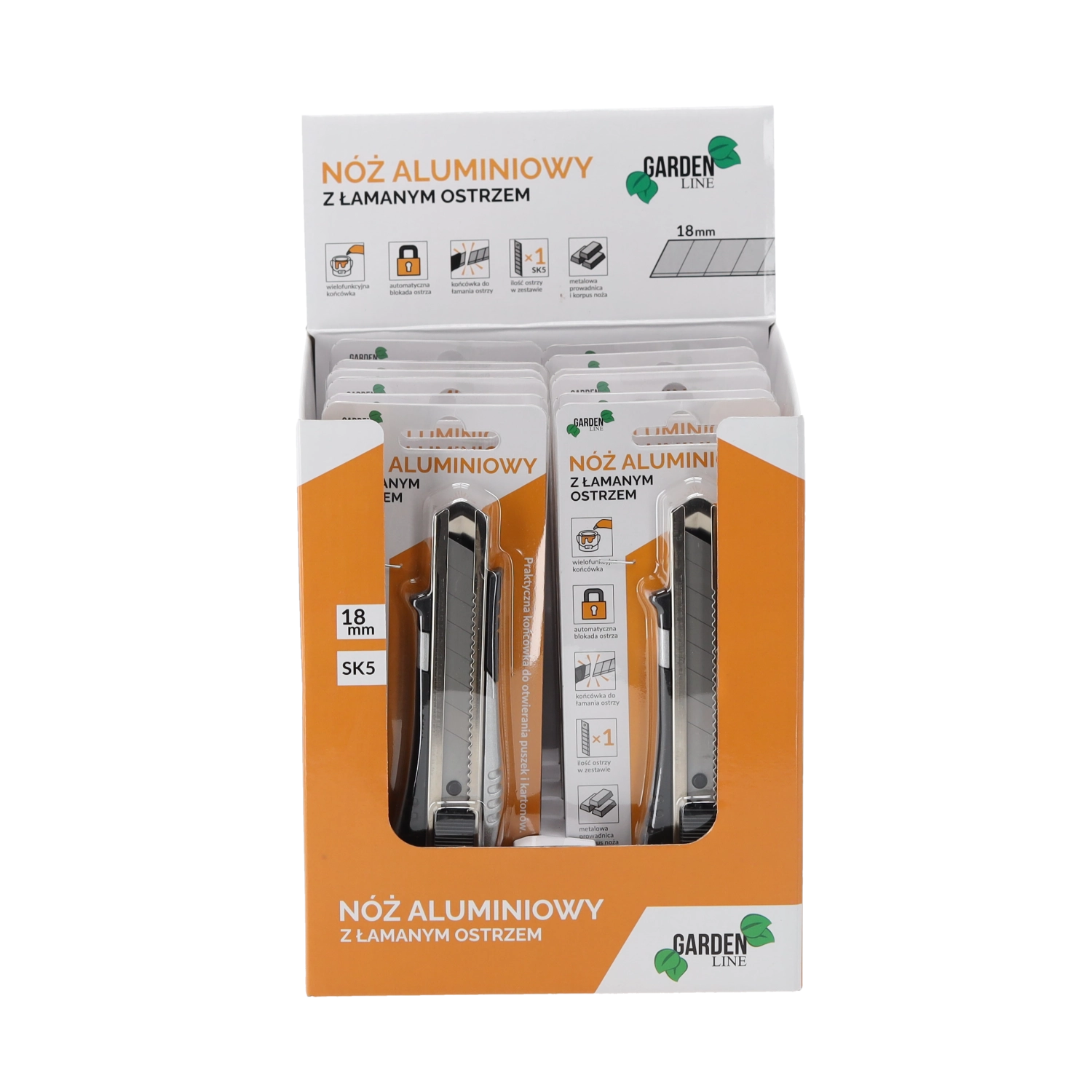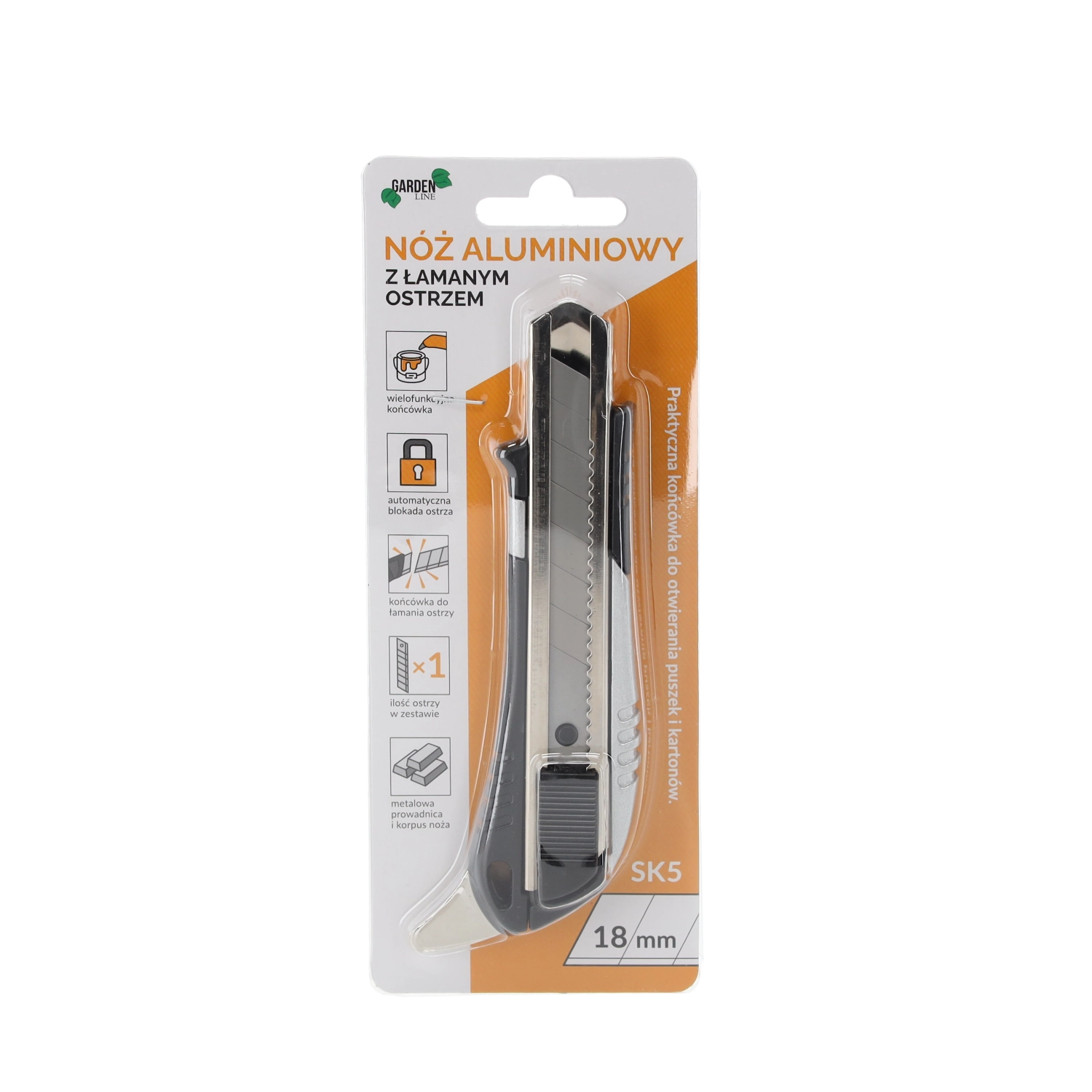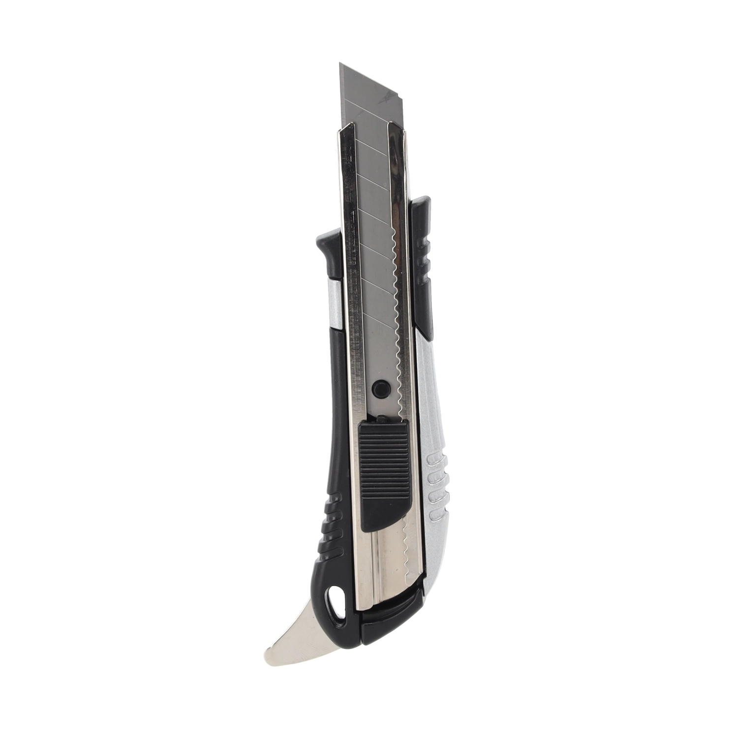 Iščete zanesljiv nož za vsakodnevno rezanje kartona, folij ali preprog? Ta aluminijasti lomilni nož širine 18 mm združuje odporno konstrukcijo z varnostnimi elementi za udobno in natančno rezanje. Avtomatska varovalka drži rezilo trdno na mestu, medtem ko črn ABS ročaj zagotavlja zanesljiv in udoben oprijem tudi pri daljšem delu.