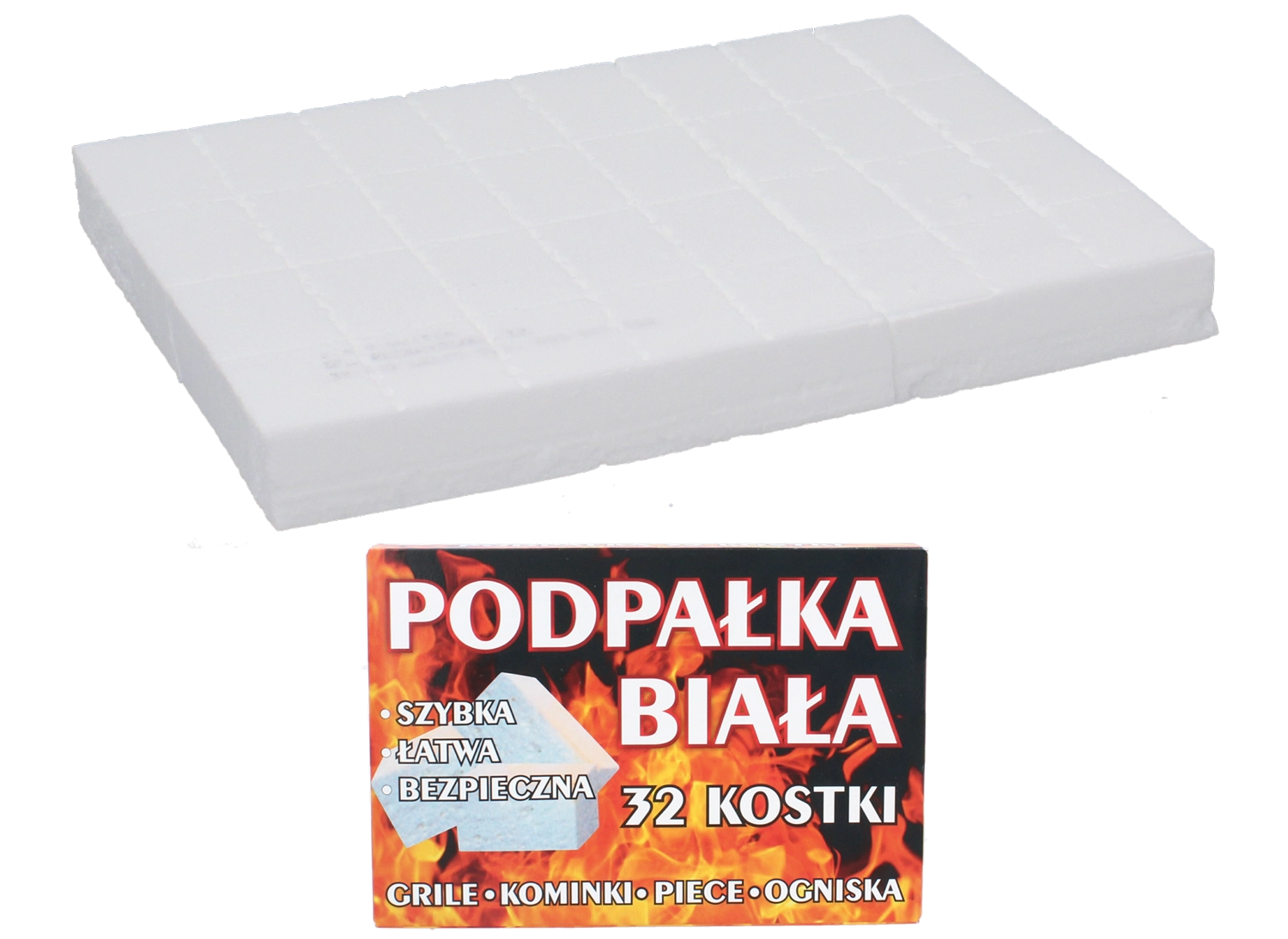 Podpalne kocke v beli barvi zagotavljajo udobno in hitro razplamenitev oglja, briketov in lesa. Primerne so tako za domačo uporabo kot za profesionalno rabo v gastronomiji in pri organizaciji zunanjih dogodkov. Eno pakiranje vsebuje 32 kosov, kar zagotavlja dovolj materiala za večkratno uporabo.