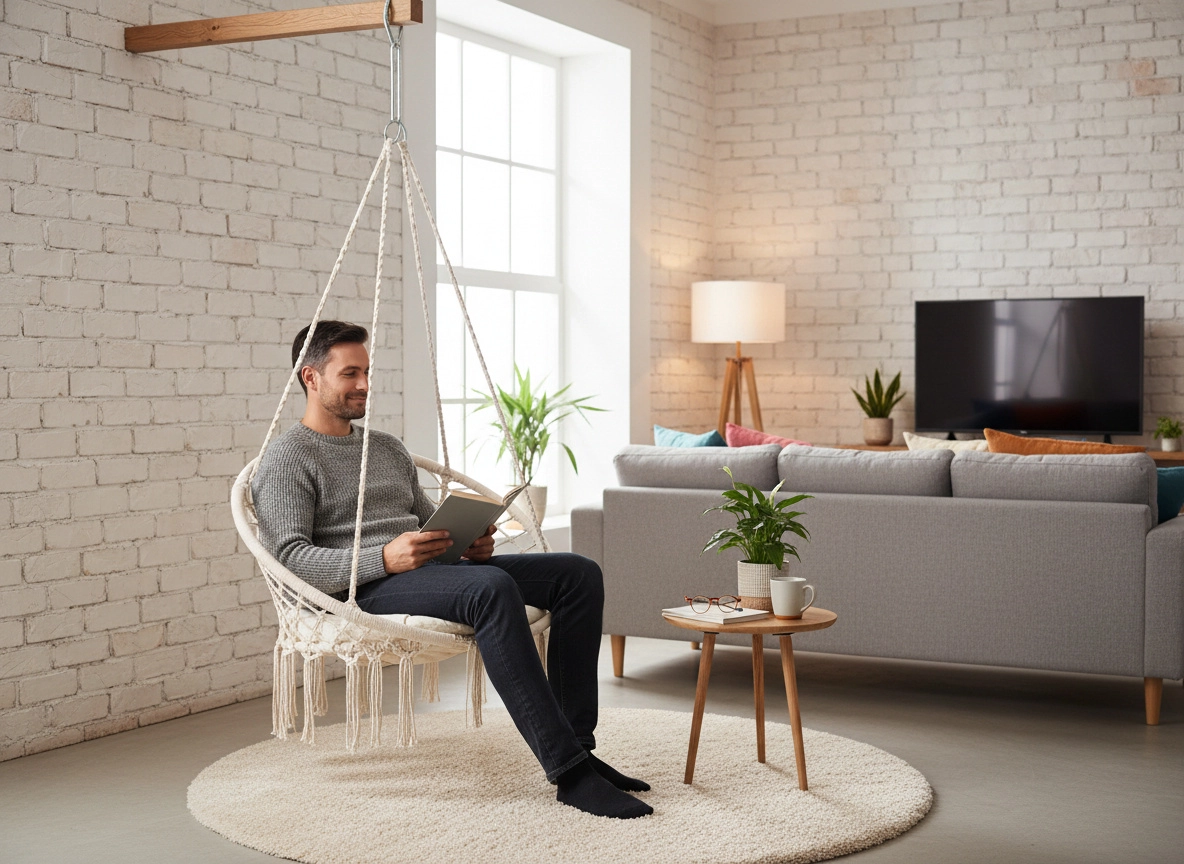 Odporna viseča vrv in čvrsta konstrukcija zagotavljata varno uporabo za vso družino pri sproščanju in nežnem zibanju.