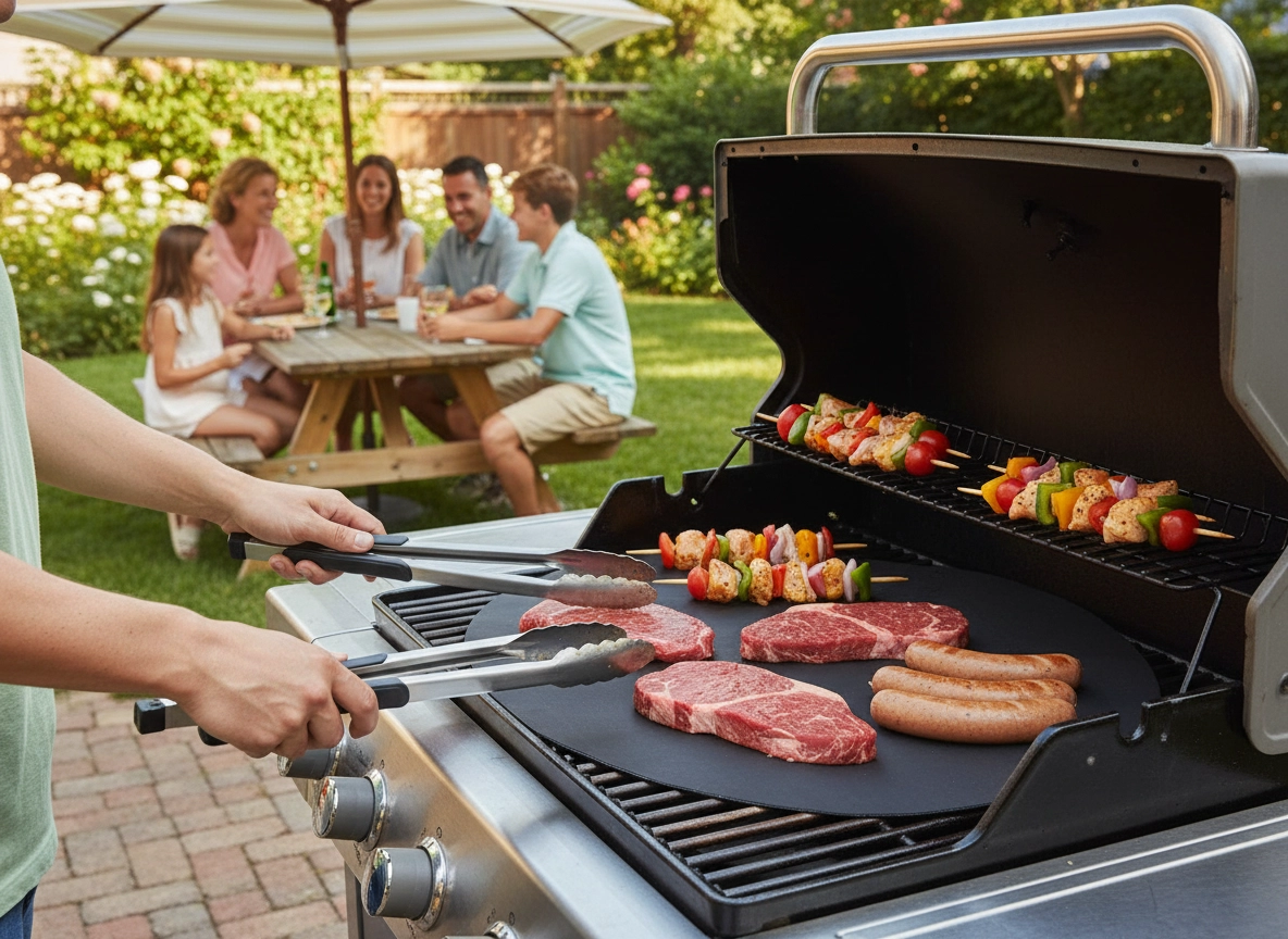 Okrogle teflonske podloge ščitijo rešetko in pekače pred umazanijo ter omogočajo bolj zdravo pripravo jedi brez odvečnih maščob. Zaradi neprijemljive površine se hrana ne zažge in jo je enostavno odstraniti, kar prihrani čas in trud pri čiščenju.