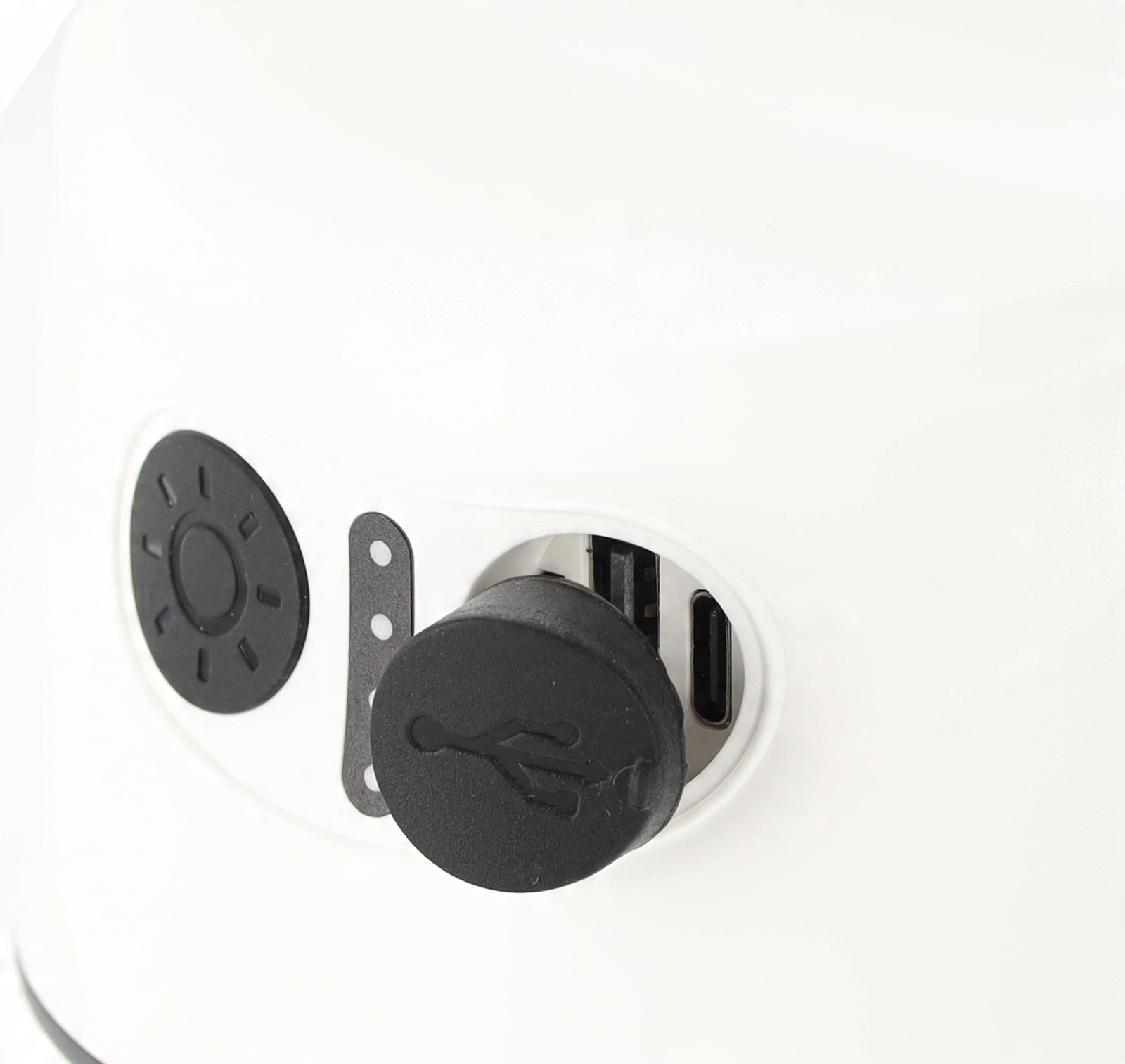 Vgrajen akumulator 2×1200 mAh zagotovi 5–6 ur delovanja. Praktični USB‑C omogoča udobno polnjenje v avtu, iz powerbanke ali iz vtičnice.