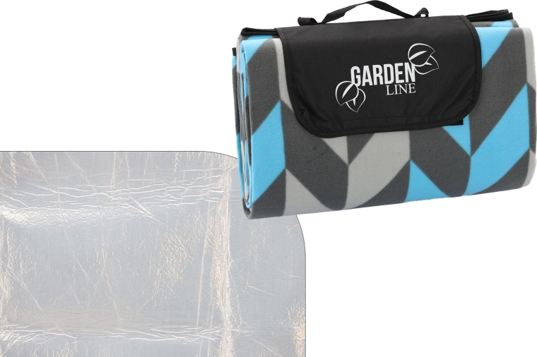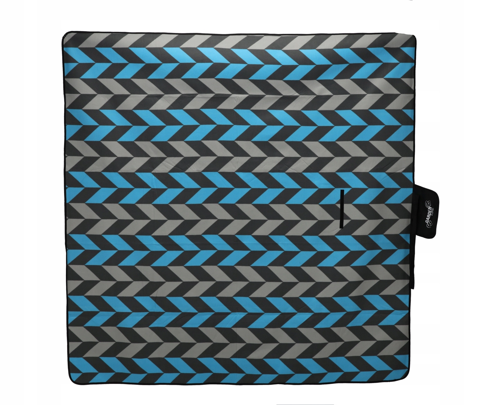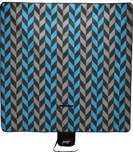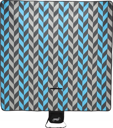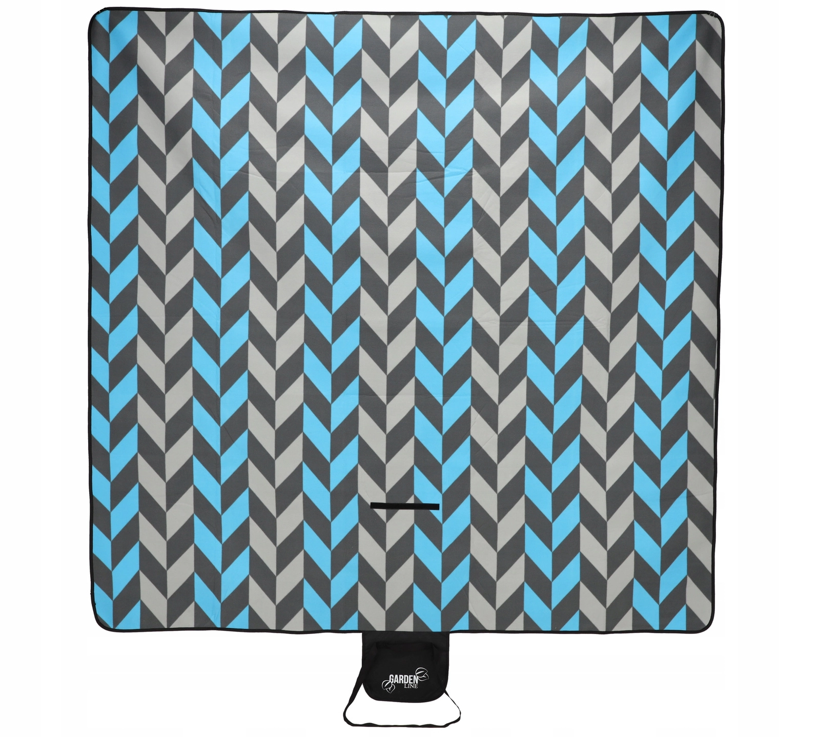 Odejo zlahka zložite v kompakten paket z zapiralno preklopko, ročajem in trakom za prenašanje. Moder in siv odtenek modernega vzorca jolka se prilega vsaki priložnosti in vašemu pikniku doda stil.
