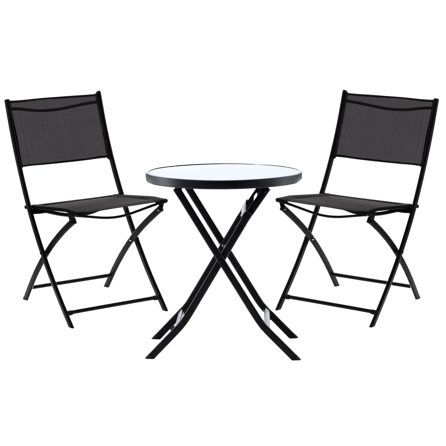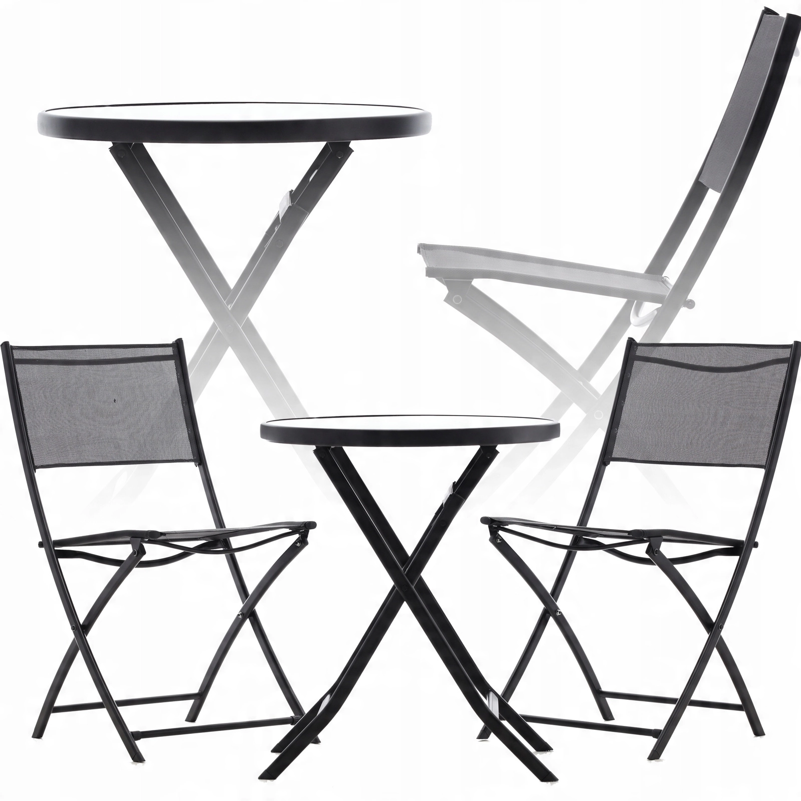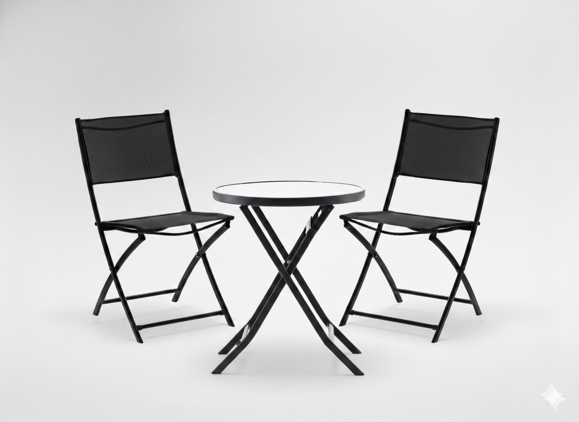 Uživajte kavo na balkonu s kompaktnim bistro setom, ki združuje sodoben dizajn in funkcionalnost. Stabilna jeklena konstrukcija s praškastim premazom je odporna na vremenske vplive, medtem ko je namizna plošča iz 5 mm kaljenega stekla elegantna in enostavna za čiščenje. Celoten set preprosto zložite in pospravite, ko potrebujete več prostora.