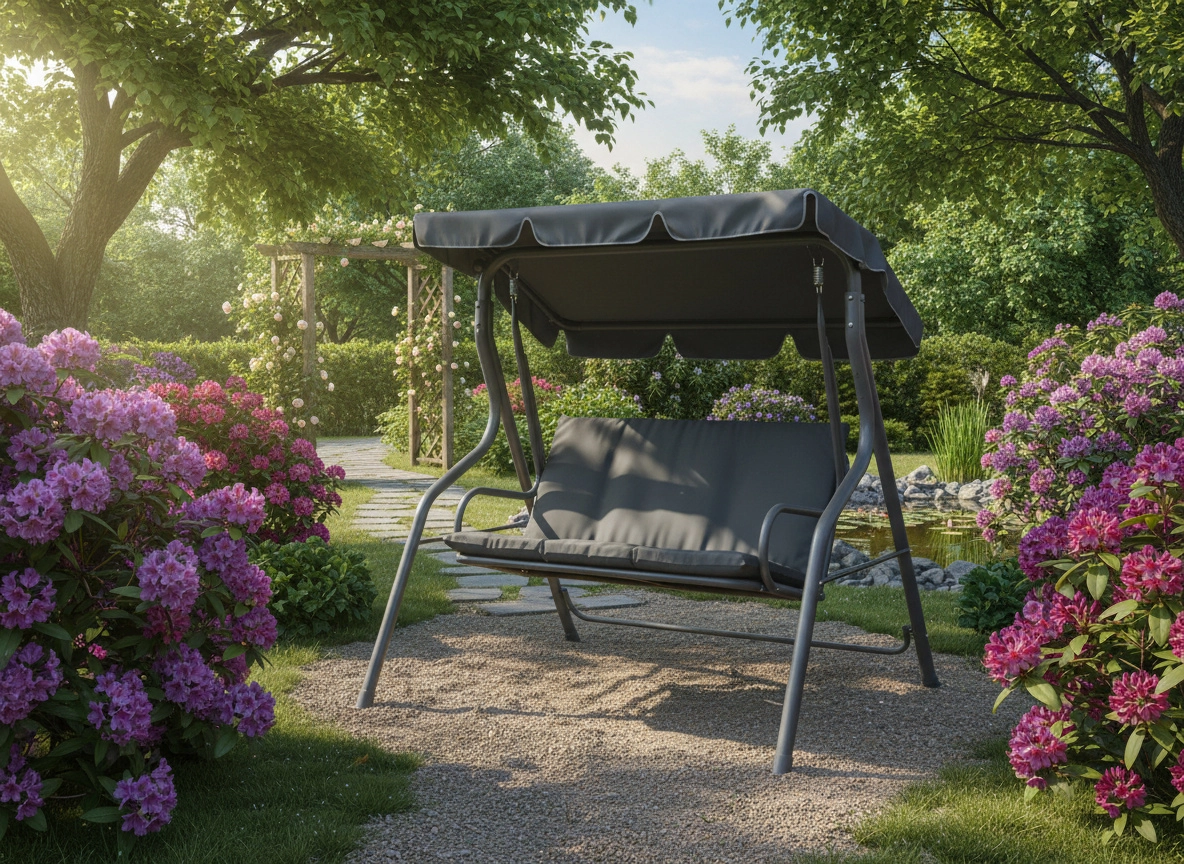 Dimenzija 117 × 90 cm je idealna za priljubljene modele gugalnic, sivi odtenek pa vaši vrtni ureditvi doda moderen, čist videz.