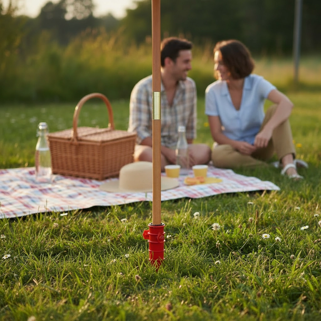 - Hitra namestitev – preprosto privijete v pesek ali zemljo