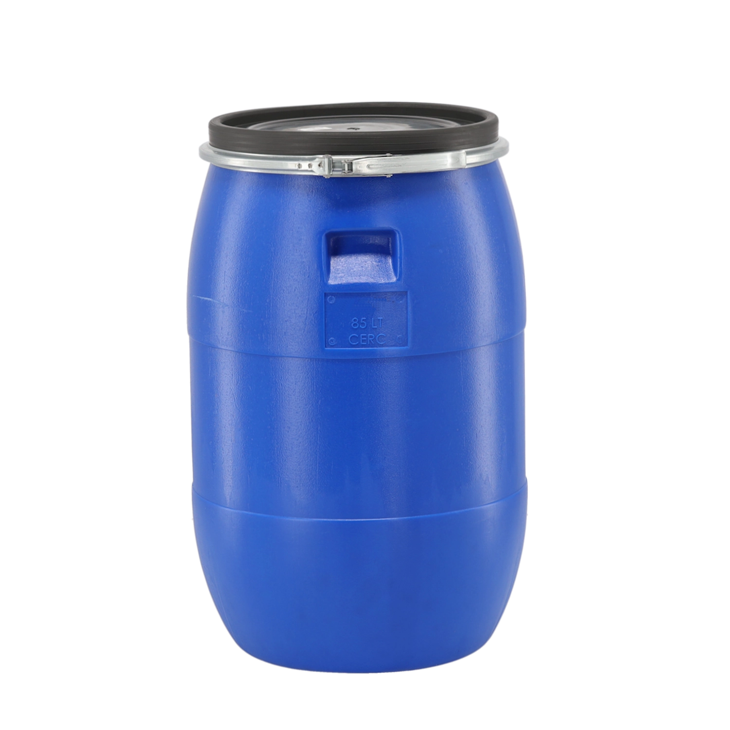 Vzdržljiv plastični sod s prostornino 85 l z kovinsko sponko in vijačnim pokrovom v paketu. Primeren za skladiščenje in obdelavo različnih vrst surovin, tekočin in sipkih materialov. Modra izvedba, čvrsta konstrukcija in enostavno rokovanje za vsakodnevno uporabo.