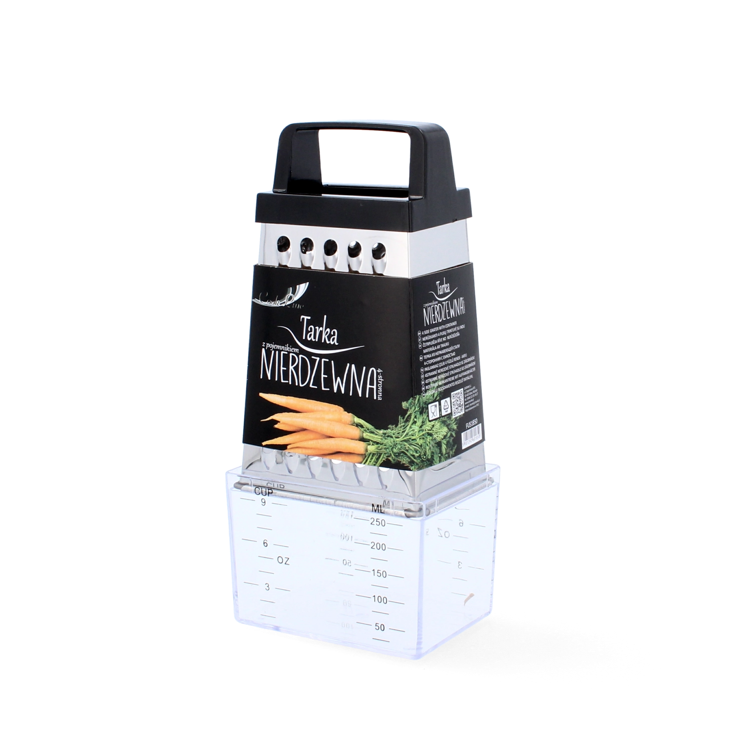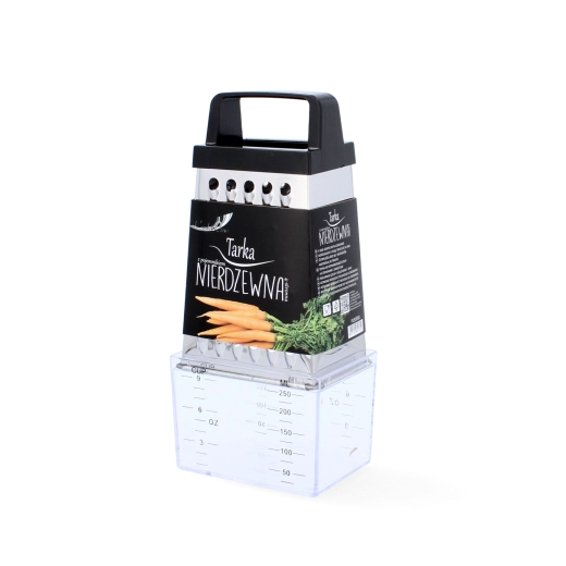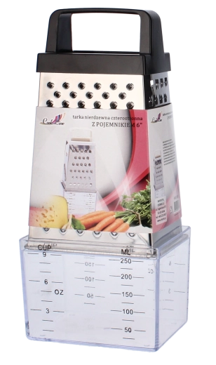 Praktično kuhinjsko strgalo iz nerjavnega jekla s priloženo posodo za čisto in udobno delo. Ponuja 4 strani strganja – fino, grobo, rezanje na rezine in zelo fino. Zahvaljujoč ergonomskemu ročaju odlično leži v roki, odporno nerjavno jeklo pa zagotavlja dolgo življenjsko dobo.