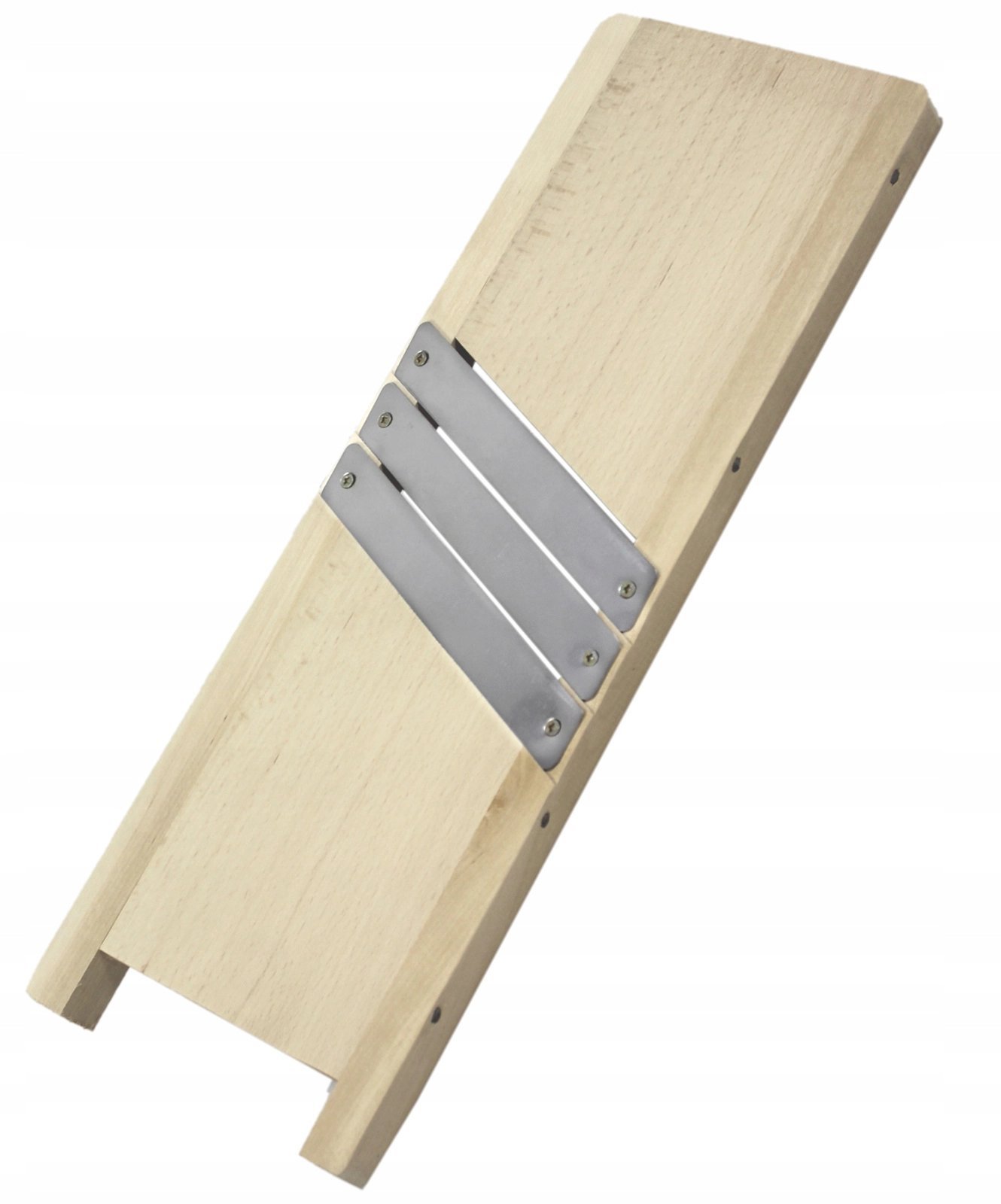 Ta lesena strgala/mandolina s tremi ostrimi nerjavnimi noži je idealna za pripravo domačega kislega zelja, solat in finih rezin zelenjave. Zaradi poševno nameščenih rezil surovine reže enakomerno in z minimalnim naporom. Kompaktne mere 44 × 15 cm olajšajo rokovanje in shranjevanje.