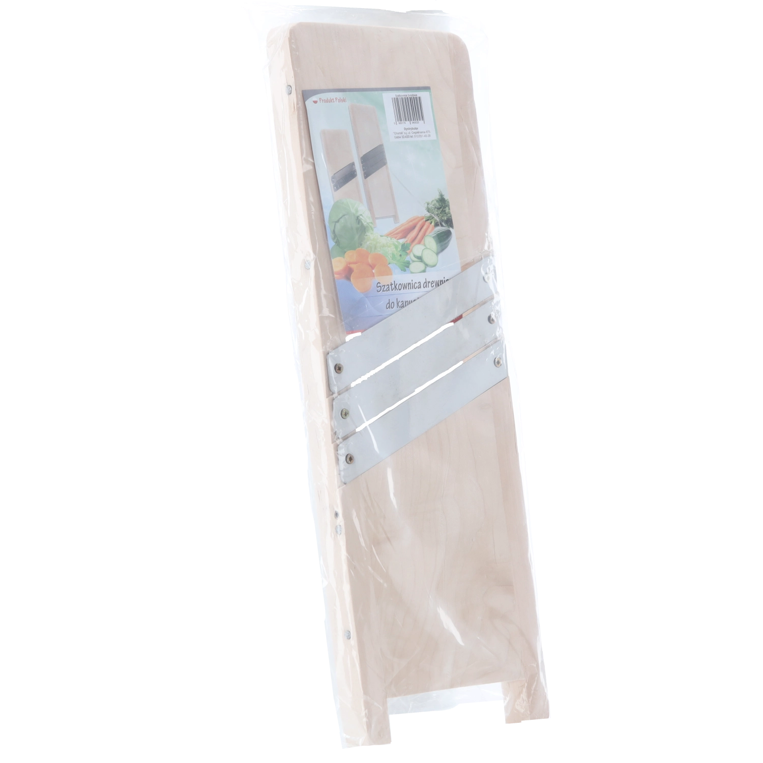 Kompaktna lesena rezila za zelje z merami 44 × 15 cm in tremi trpežnimi nerjavnimi noži za hitro, enakomerno in natančno rezanje zelja, zelenjave in sadja. Stabilna konstrukcija, enostavno vzdrževanje in zanesljivo delovanje za domačo in manjšo gastro uporabo.