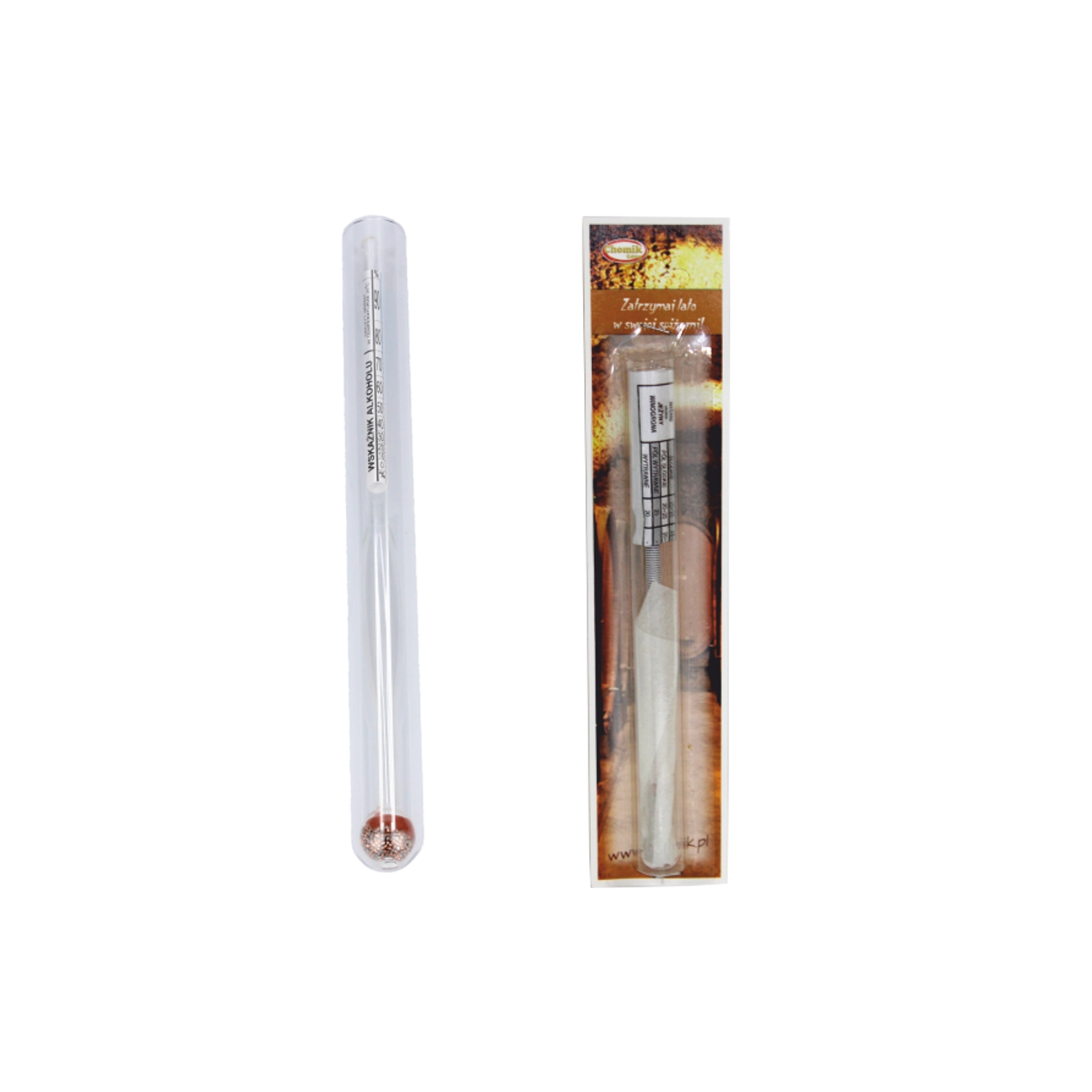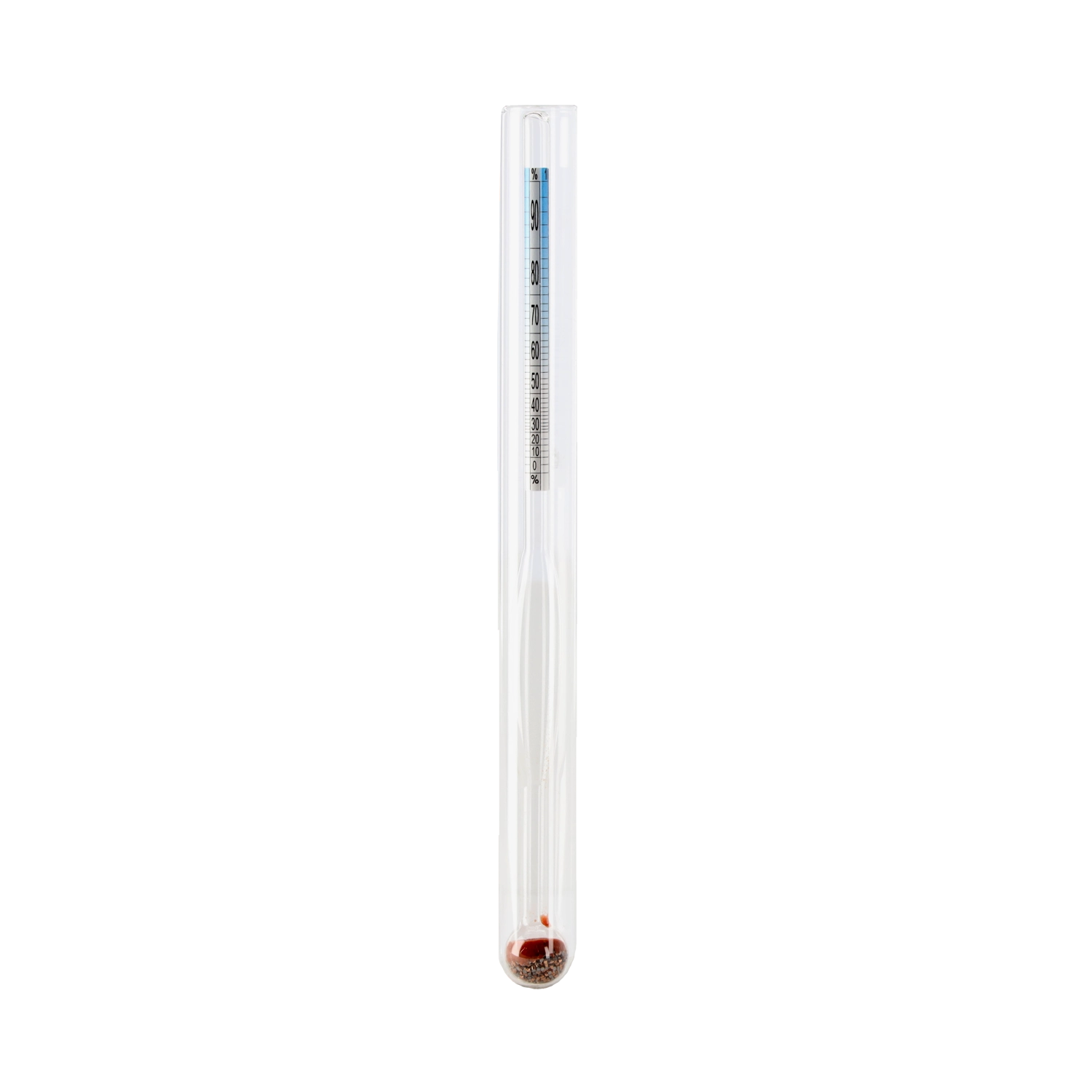 Natančen in zanesljiv alkoholmeter, namenjen merjenju volumskega odstotka alkohola v čistih raztopinah brez sladkorja, kot so vodka, etanol ali domači destilati. Ponuja širok razpon 0–100 % in je kalibriran pri 20 °C za maksimalno natančnost. Odporna steklena izvedba in zaščitno plastično ohišje zagotavljata varno uporabo in prevoz.