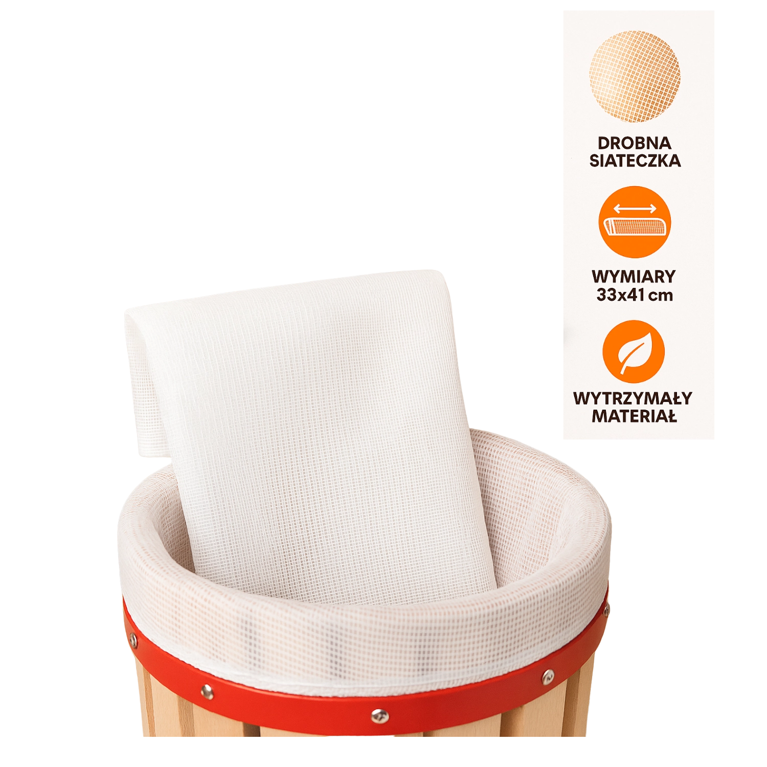 Pri uporabi tega filtra se pulpa zadrži v košu stiskalnice, kar poenostavi čiščenje in poveča skupno učinkovitost stiskanja. Material je zasnovan tako, da ne vpliva na končni okus in prenese večkratno uporabo.
