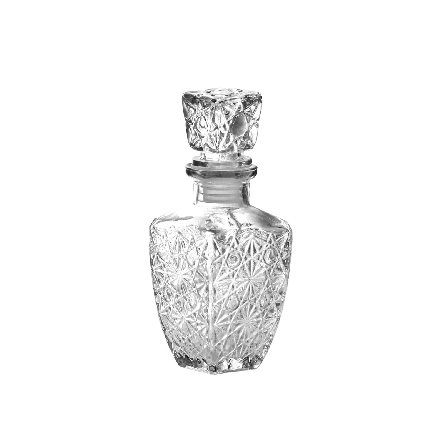 Ta steklena karafa združuje praktičnost in estetiko. Prosojno steklo poudari barvo pijače, medtem ko nežni vzorci dodajo pridih razkošja in hkrati zagotavljajo trden oprijem. Steklen zamašek s tesnilom pomaga ščititi vsebino pred oksidacijo ter ohranja poln okus in aromo.