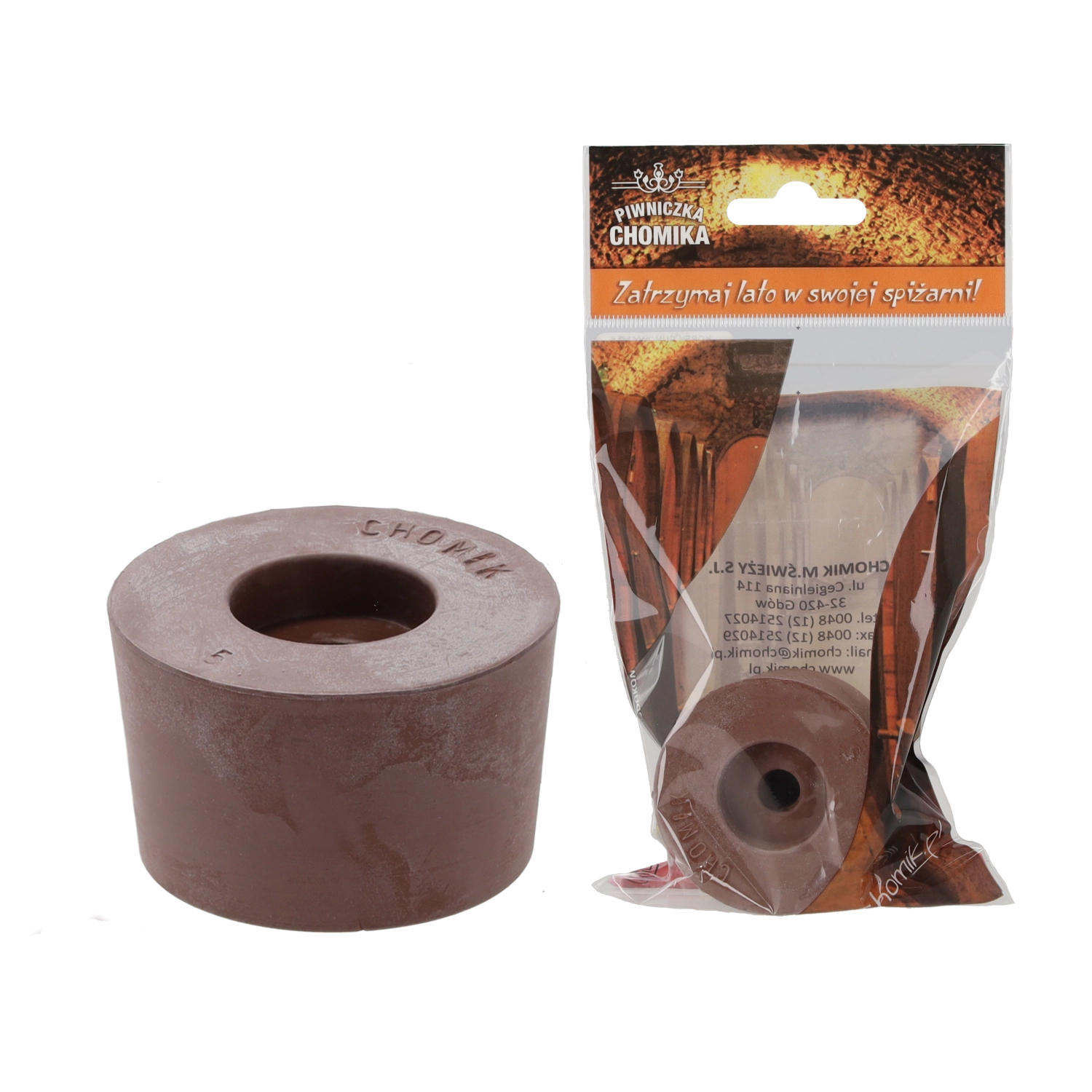 Praktičen gumijast zamašek z odprtino za fermentacijsko cev je idealen za varno zapiranje steklenih balonov pri domači pridelavi vina in drugih pijač. Zahvaljujoč prožnemu materialu se popolno prilagodi grlu posode, zagotavlja tesno zapiranje in zanesljiv odvod plinov med fermentacijo, ne da bi vplival na okus ali vonj pijače.