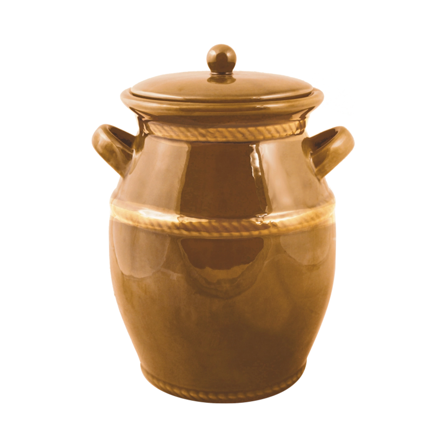 Ta kakovostna keramična fermentacijska posoda s prostornino 4 litre je zanesljiv pomočnik za pripravo domačega kislega zelja, kumaric in drugih fermentiranih živil brez konzervansov. Medena glazura ščiti površino, olajša vzdrževanje in poudari tradicionalen videz, ki se poda v vsako kuhinjo.