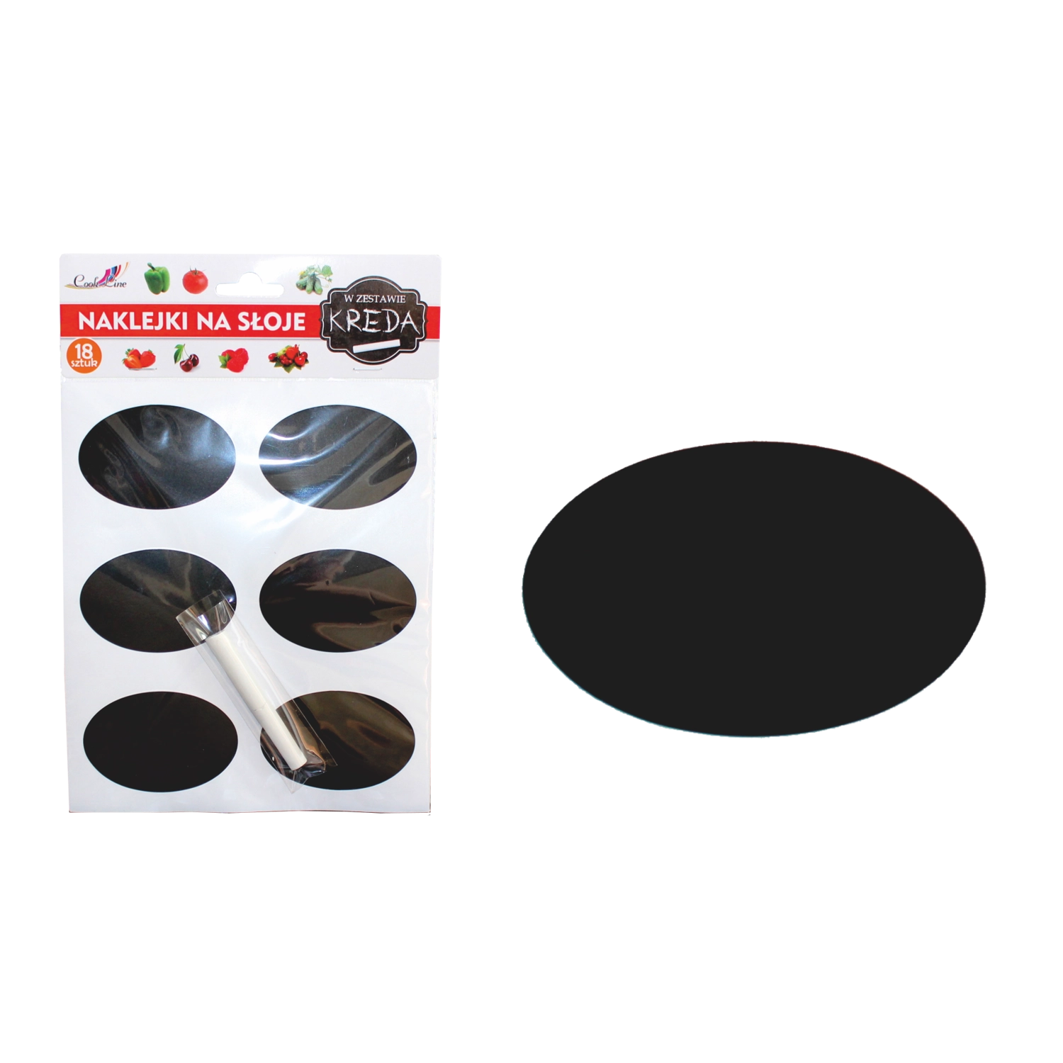 Praktičen komplet 18 samolepilnih tablo etiket dimenzij 6 × 4,8 cm za pregledno označevanje kozarcev, posod in druge embalaže. Etikete lahko večkrat pišete in brišete z priloženo belo kredo. Odlično se oprimejo stekla, keramike, papirja in kovine ter so zaradi odpornosti na vlago idealne za kuhinjo in shrambo.