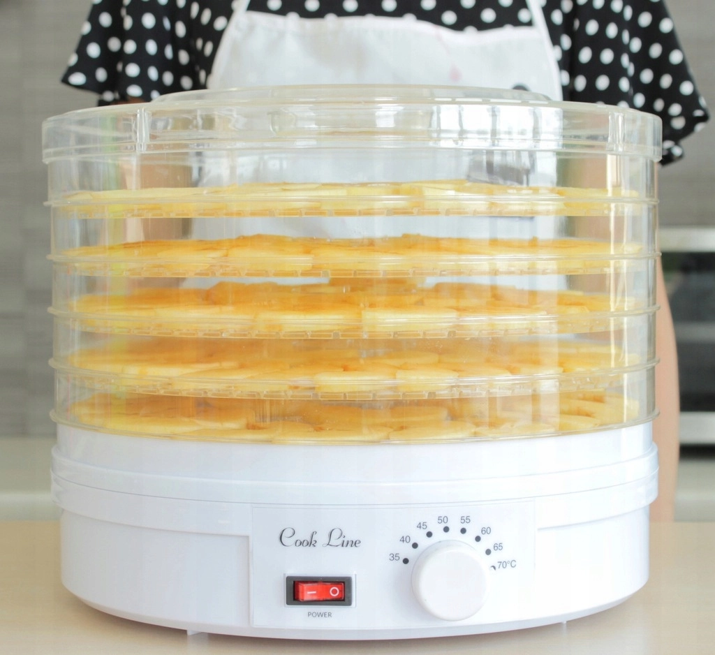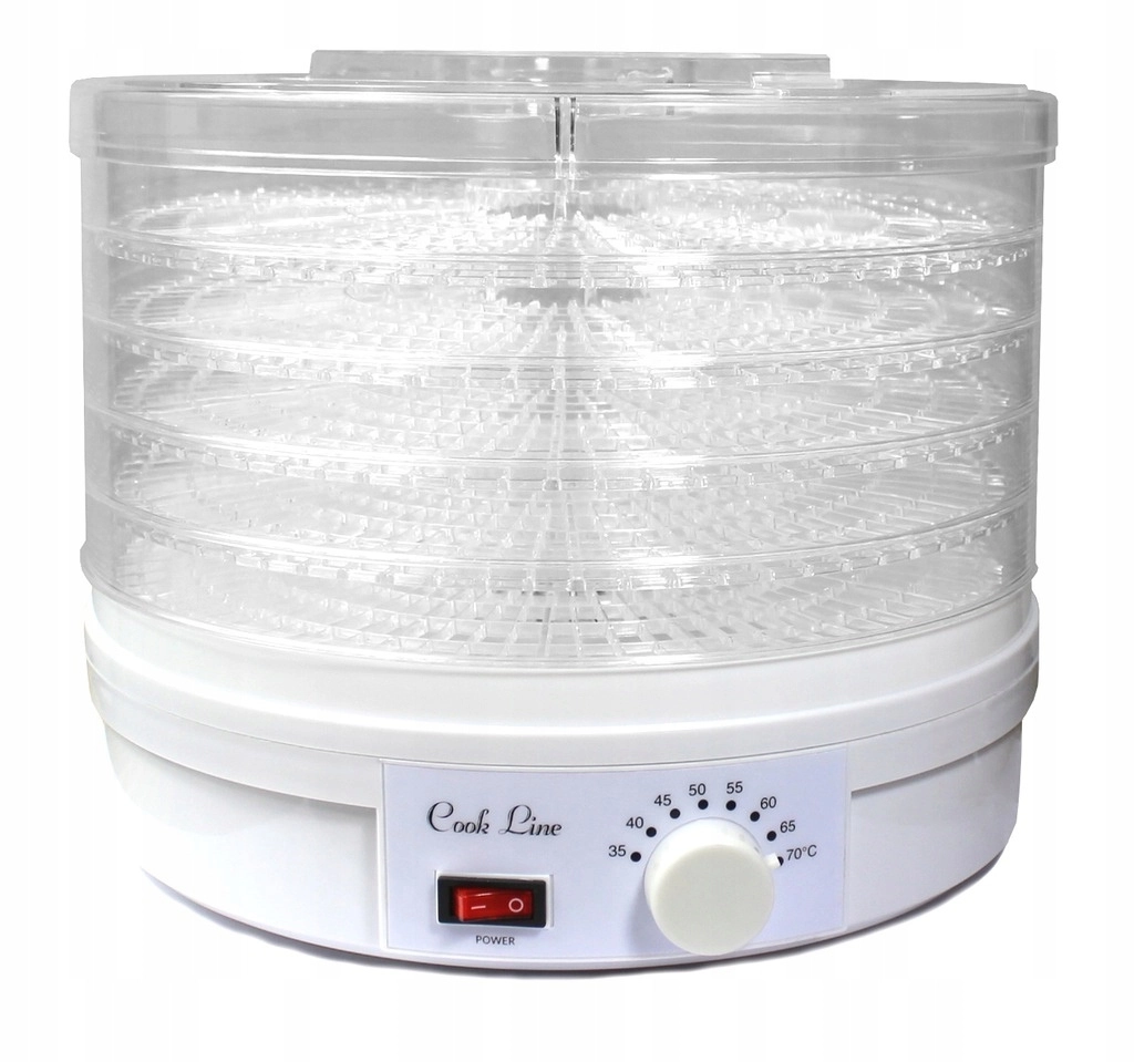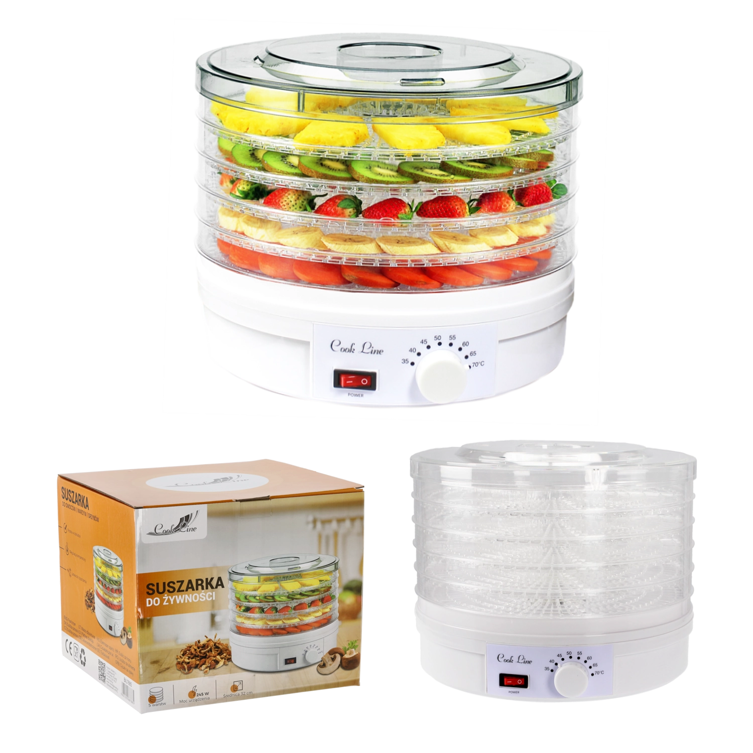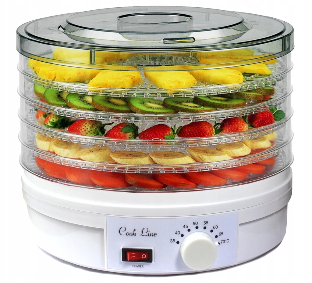Odkrijte preprost način, kako podaljšati obstojnost pridelkov in pripraviti zdrave prigrizke brez dodanega sladkorja. Ta električni sušilnik hrane z močjo 245 W in petimi prozornimi nadstropji zagotavlja enakomerno cirkulacijo toplega zraka in učinkovito sušenje rezin sadja, zelenjave, zelišč ali gob.