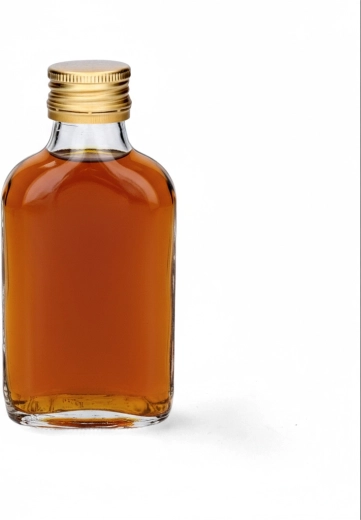 Elegantna steklena ploskačka s prostornino 100 ml je idealna za likearje, žgane pijače, vina in sokove. Odporno debelo steklo in tesno zlatо navojno zapiralo 28 mm varno ohranjata pijačo zaprto, medtem ko prozorna izvedba omogoča enostaven nadzor vsebine. Odlična za domačo proizvodnjo, darilna pakiranja in dekoracije.