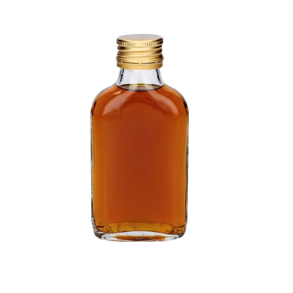 Ta kompaktna steklena steklenička tipa ploskačka združuje praktičnost in slog. Zahvaljujoč čvrstemu, prozornemu steklu je vzdržljiva in higienska, kovinsko zlato zapiralo z navojem pa zagotavlja zanesljivo tesnjenje brez iztekanja. Prostornina 100 ml je popolna za degustacijske serije, darilne sete ali potovalna pakiranja priljubljenih pijač.