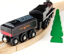 Odkrijte čarovnijo zlate dobe železnic s to natančno izdelano repliko parne lokomotive znamke Bigjigs Rail. Set vsebuje lokomotivo, vagonček in tri kose tirov, ki jih je mogoče kombinirati z drugim lesenim železniškim priborom na trgu. Izdelano iz kakovostnih in odgovorno pridobljenih naravnih materialov, ta igrača izpolnjuje stroge evropske varnostne standarde.