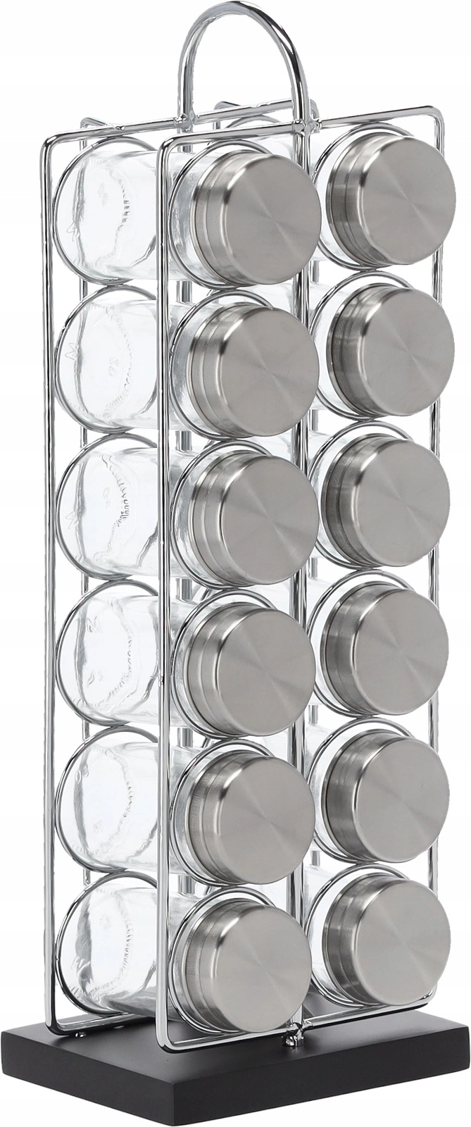 V paketu prejmete 12 prozornih steklenih posodic s prostornino 90 ml z vijačnimi pokrovčki iz nerjavnega jekla, ki ohranjajo aromo in svežino začimb. Praktična razporeditev v 2 stolpcih po 6 omogoča hitro iskanje in prihrani prostor na pultu.