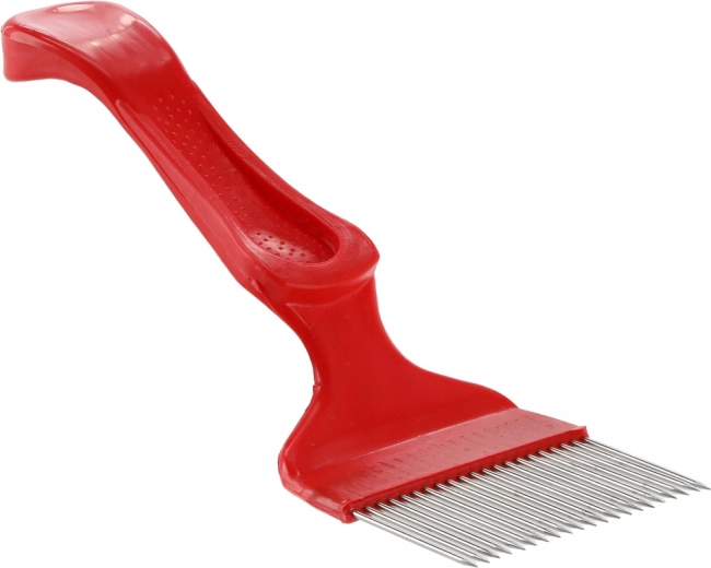 Ta vilica za odkrivanje je nepogrešljivo orodje za vsakega čebelarja. Nerjavno jeklo zagotavlja dolgo življenjsko dobo, čist rez in enostavno vzdrževanje, medtem ko lahek plastični ročaj nudi zanesljiv oprijem tudi pri daljšem delu. Širina glave 7 cm in dolžina 20,4 cm omogočata natančno in hitro odkrivanje brez poškodovanja satja.