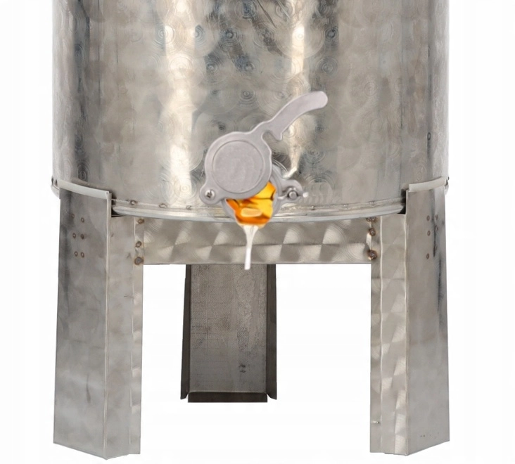 Tesnilni pokrov ščiti med pred nečistočami in vlago ter pomaga ohranjati optimalne higienske pogoje. Ventil na dnu posode omogoča gladek in natančen odvzem medu v kozarce ali vrče.