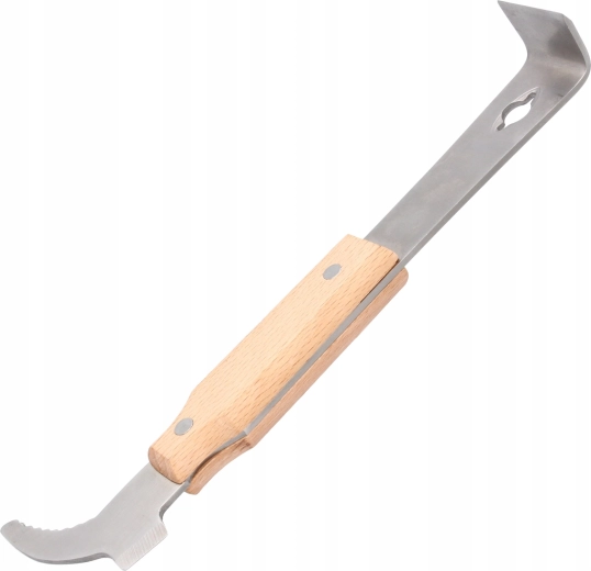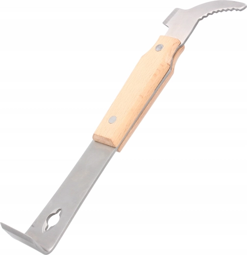 Profesionalno čebelarsko dleto je osnovno orodje za učinkovito delo v panju. Združuje trdnost nerjavnega jekla z udobnim oprijemom lesenega ročaja, zato omogoča natančno vzvodno odpiranje satnikov in nežno rokovanje brez poškodovanja satja. Vgrajena razpršilec in oblikovana kljukica občutno pospešita pregled in vzdrževanje čebelje družine.