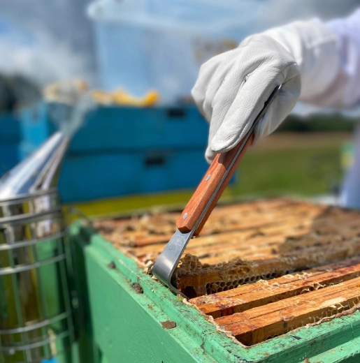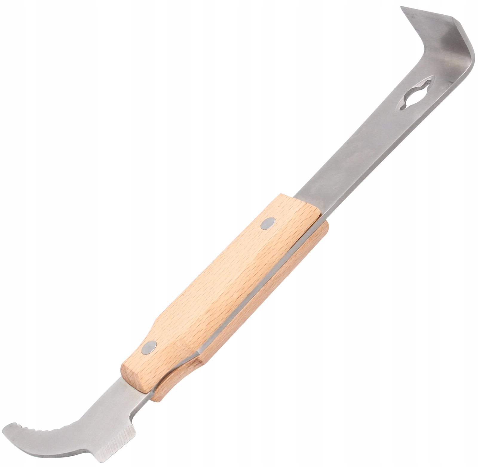 Ergonomski leseni ročaj zagotavlja zanesljiv in udoben prijem tudi z rokavicami, idealno za delo pri panju na terenu.