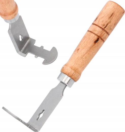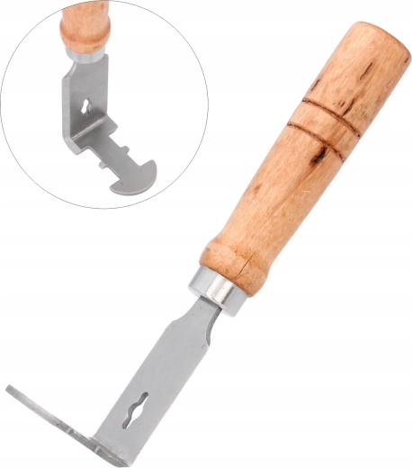 Zahvaljujoč rahlo nabrušenemu robu je orodje primerno tudi za čiščenje sten in izrezov (vreten) panja. Praktična odprtina v glavi orodja služi za izvlek izstopajočih žebljičkov iz okvirjev ali za enostavno obešanje na steno v delavnici. Kompaktne dimenzije in univerzalna oblika zagotavljajo hitro in učinkovito vzdrževanje panjev brez nepotrebnega napora.