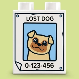 Ustvarjanje zgodb - Set vsebuje policijsko figurico, izgubljenega kužka in plakat z obvestilom o njegovi izgubi. S temi elementi lahko otroci ustvarjajo osupljive pustolovske zgodbe.