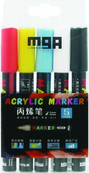 Akrilne označevalce so idealne za dekoracijo različnih površin. Ti označevalci svetijo v temi in so primerni za uporabo na keramiki, steklu, kamnih in drugih materialih. Ko se posušijo, so vodoodporni in hitro se sušijo.