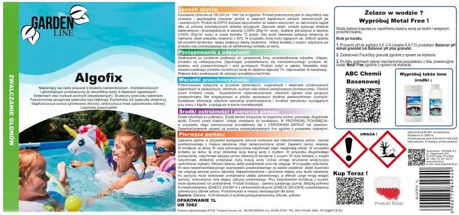 Ohranite vodo v vašem bazenu popolnoma čisto in higiensko s pripravkom ALGOFIX. Njegova napredna sestava zagotavlja zanesljivo dezinfekcijo in preprečevanje rasti alg brez neželenega penjenja. Primeren je za notranje in zunanje bazene, pa tudi za fontane in ribnike brez rib.