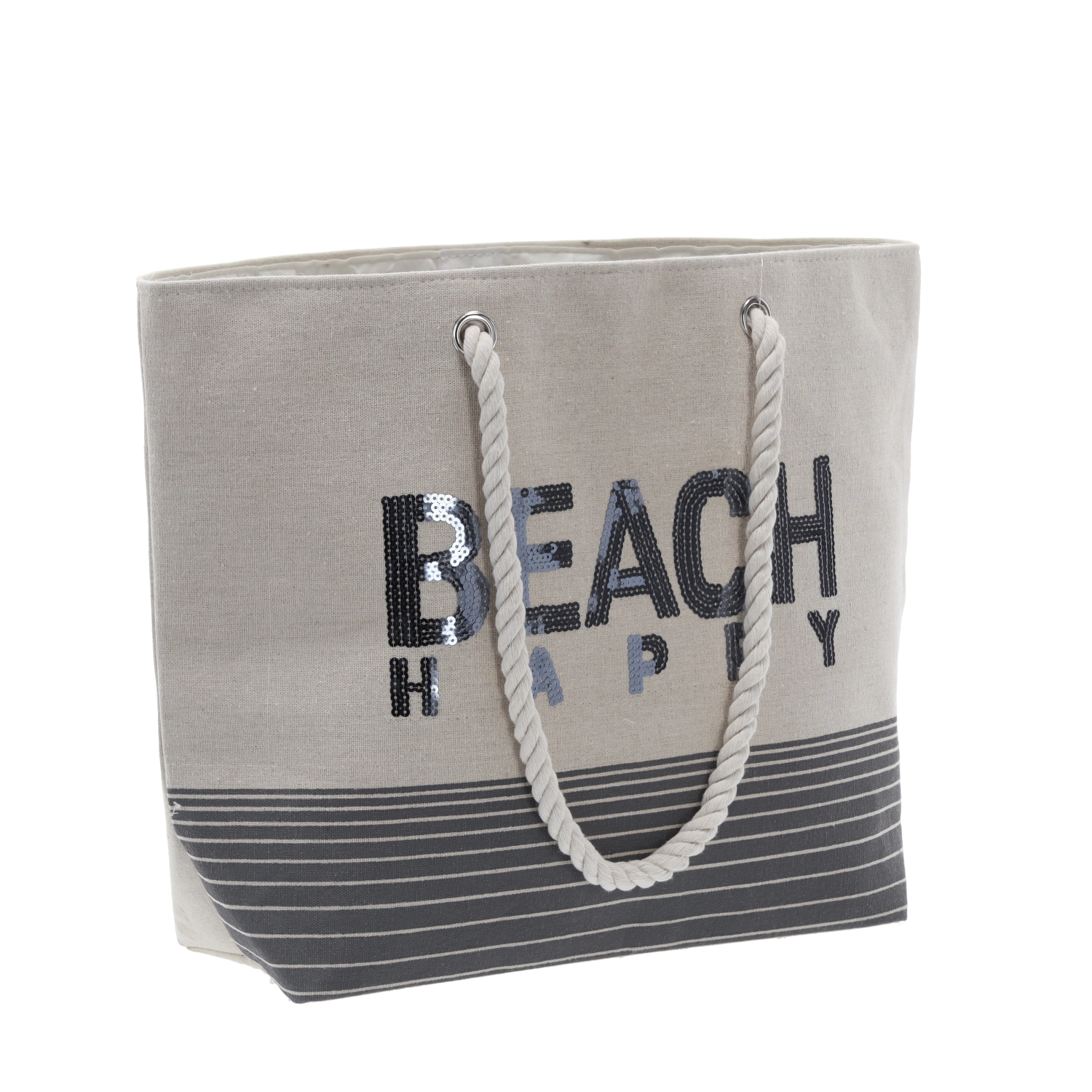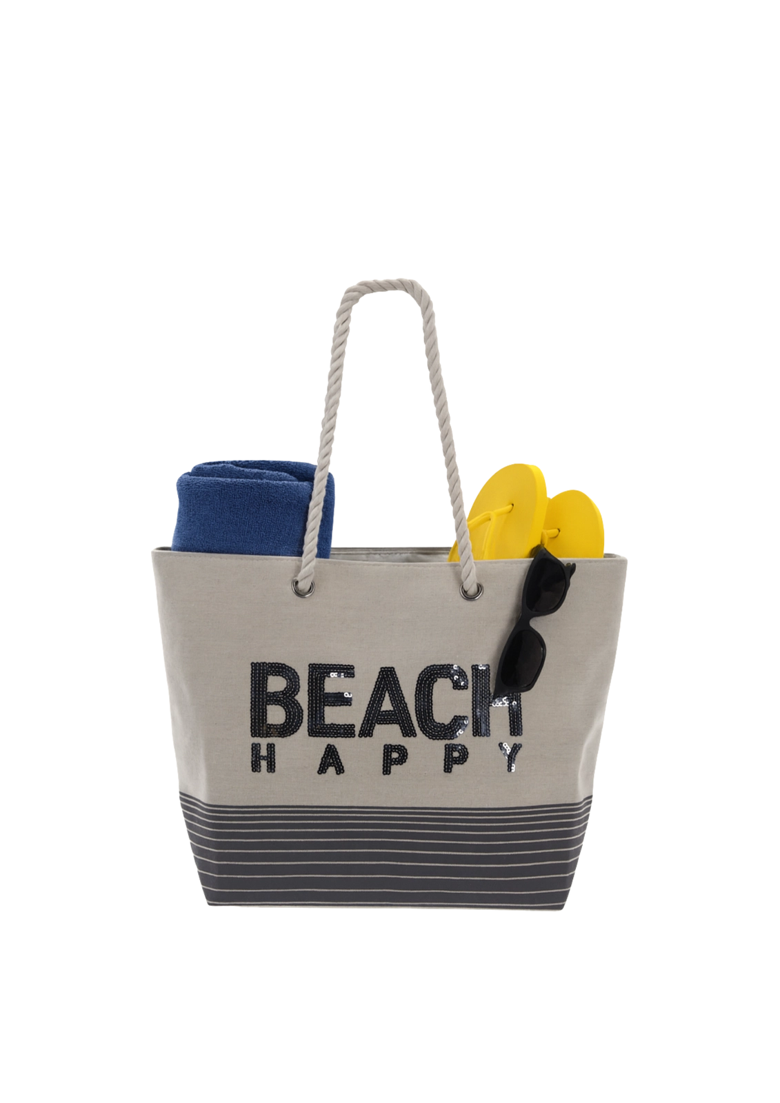 Stilska in praktična plažna torba Beach Happy z merami 50 × 35 cm ponuja dovolj prostora za brisačo, kremo za sončenje in druge nujnosti. Zaradi lahke zasnove, mehkih ročajev in notranjega žepa na zadrgo je idealna za poletne izlete k morju, jezeru ali v mesto.