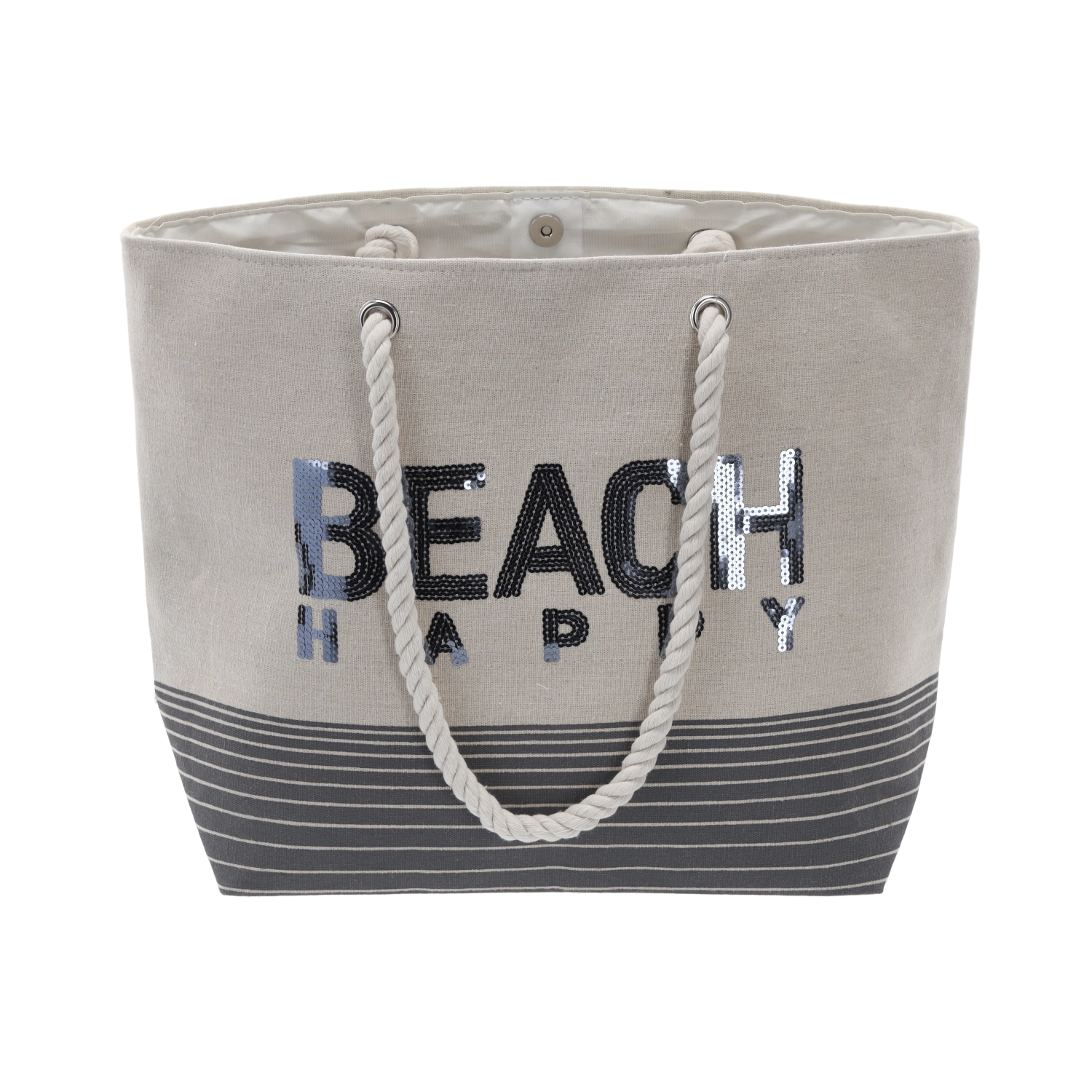 Uživajte v brezskrbnem poletju s plažno torbo Beach Happy, ki združuje praktično organizacijo shranjevalnega prostora z modernim dizajnom. Prostoren glavni predal zlahka sprejme vse od brisače do plastenke z vodo, medtem ko notranji žep na zadrgo varno skrije vaše dragocenosti.