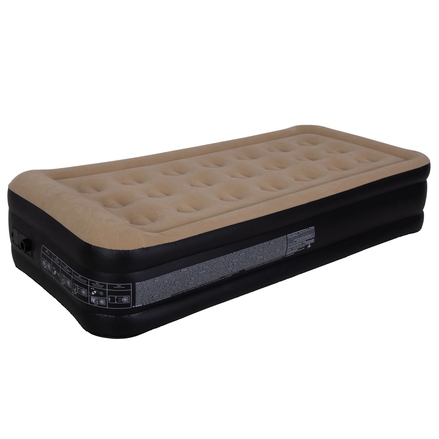 Praktična napihljiva postelja z merami 196 × 97 × 47 cm z vgrajeno električno črpalko ponuja udobno spanje doma in na poti. Zahvaljujoč mehki velurasti površini in stabilni coil-beam konstrukciji je ležanje udobno in čvrsto. Postelja se napihne v približno 2 minutah, enostavno se shranjuje in je idealna kot dodatno ležišče za goste ali za kampiranje.
