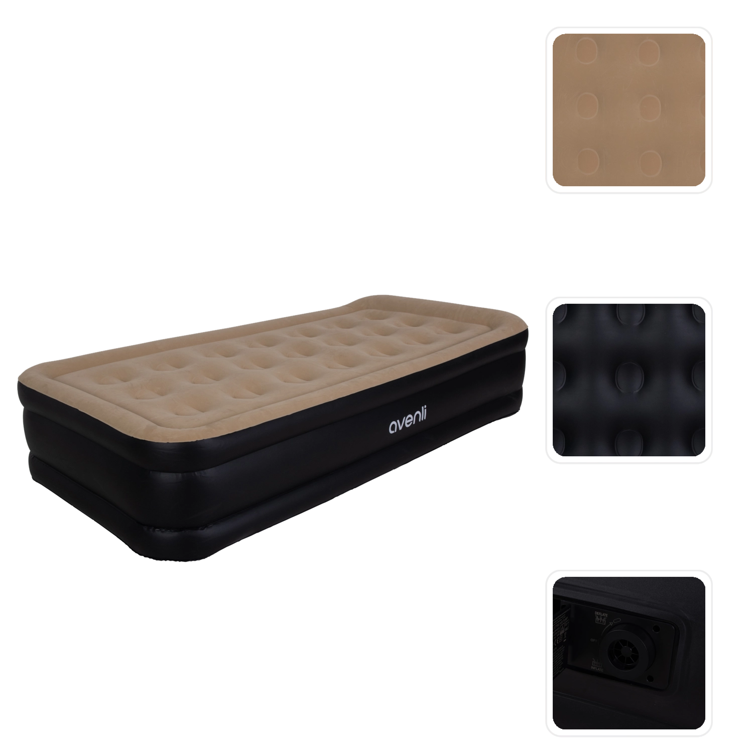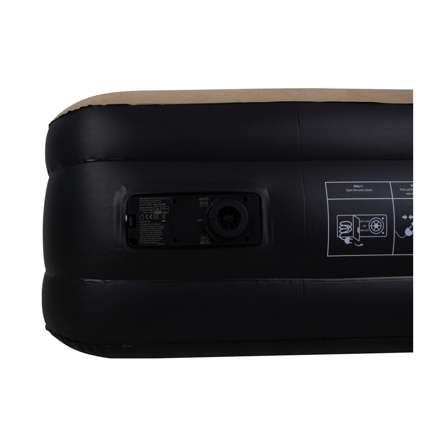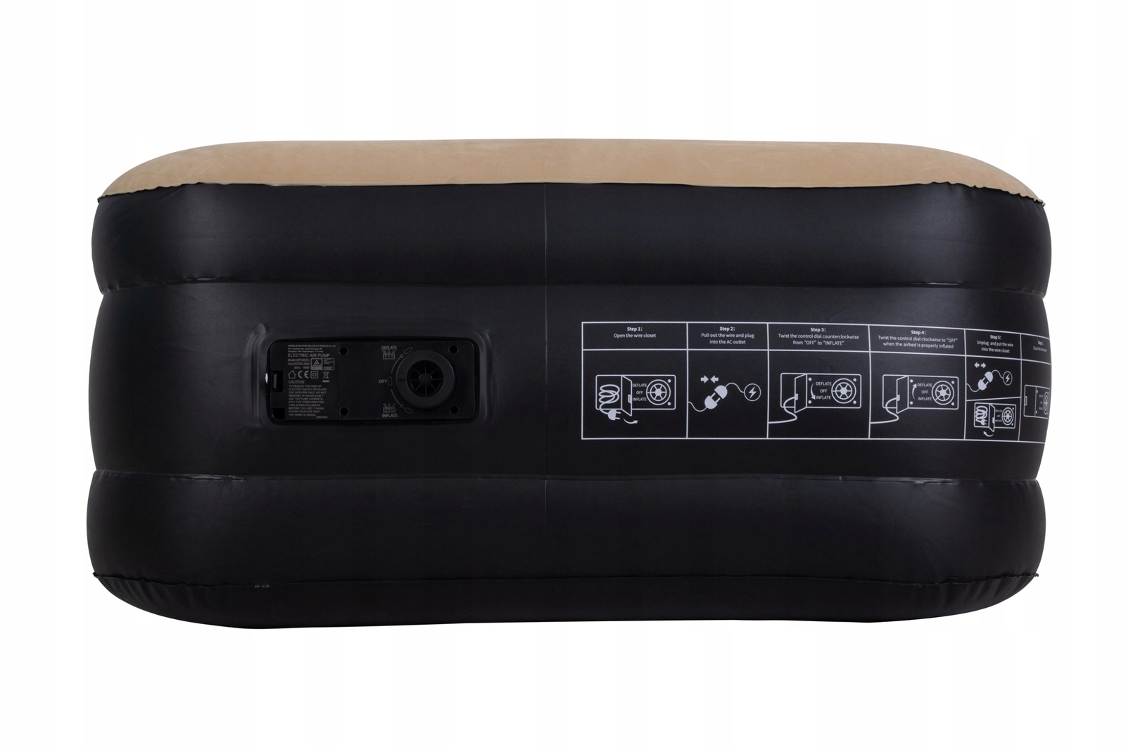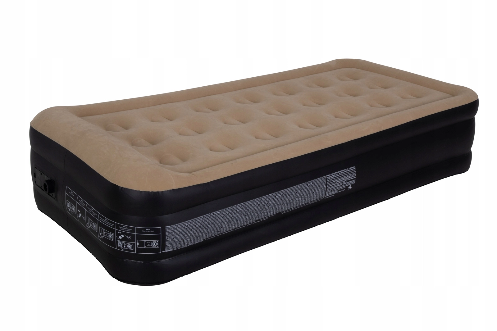 Vgrajena električna črpalka 220–240 V posteljo hitro sama napihne in izprazni – dovolj je le preklop stikala. Po uporabi jo enostavno pospravite v transportno torbo. Priporočena nosilnost je 100 kg, idealno za eno odraslo osebo.