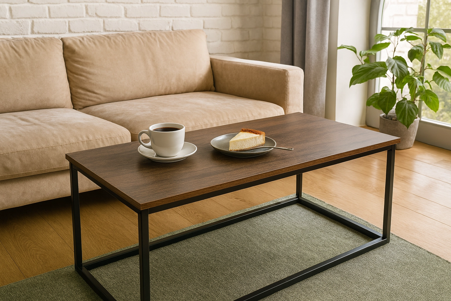 Vnesite v interier čiste linije in industrijsko eleganco. Pravokotna mizica s ploščo v imitaciji lesa deluje toplo in domačno, medtem ko minimalistično kovinsko podnožje doda zračnost in vzdržljivost. Odlična je za kavo, knjige in dekoracije ter postane stilen osrednji element vaše cone za počitek.