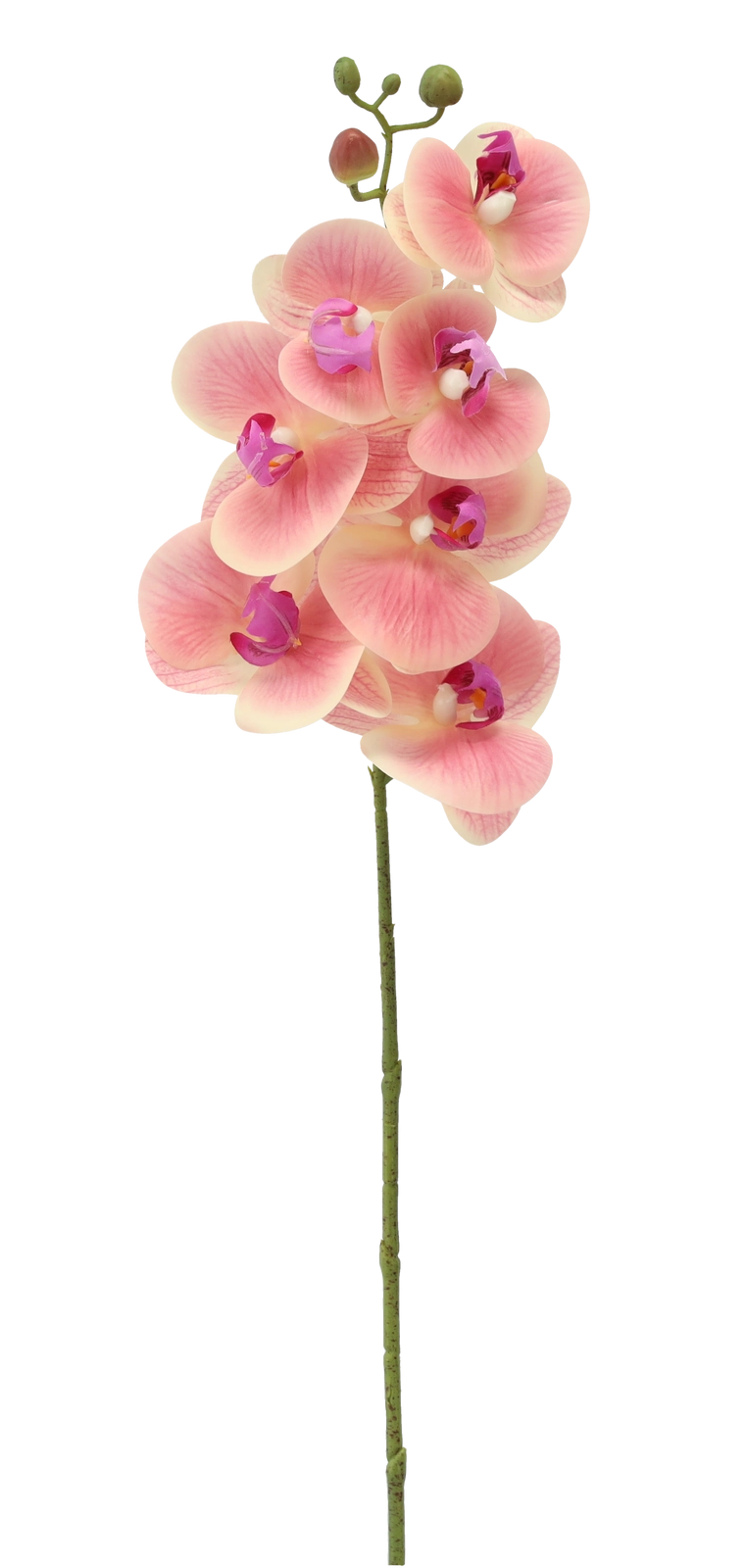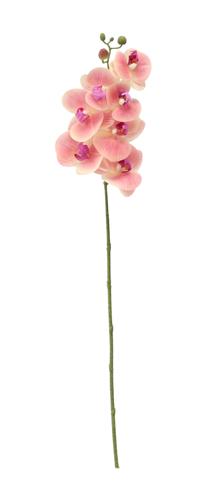 Ta umetna orhideja je idealna izbira za vse, ki želijo lepoto cvetja brez skrbi. Zaradi realističnih venčnih listov in vernega barvnega prehoda deluje kot živa ter odlično dopolni dnevno sobo, spalnico, pisarno in recepcijo. Dolg in vitek stebelni del je primeren za visoke vaze in moderne aranžmaje.