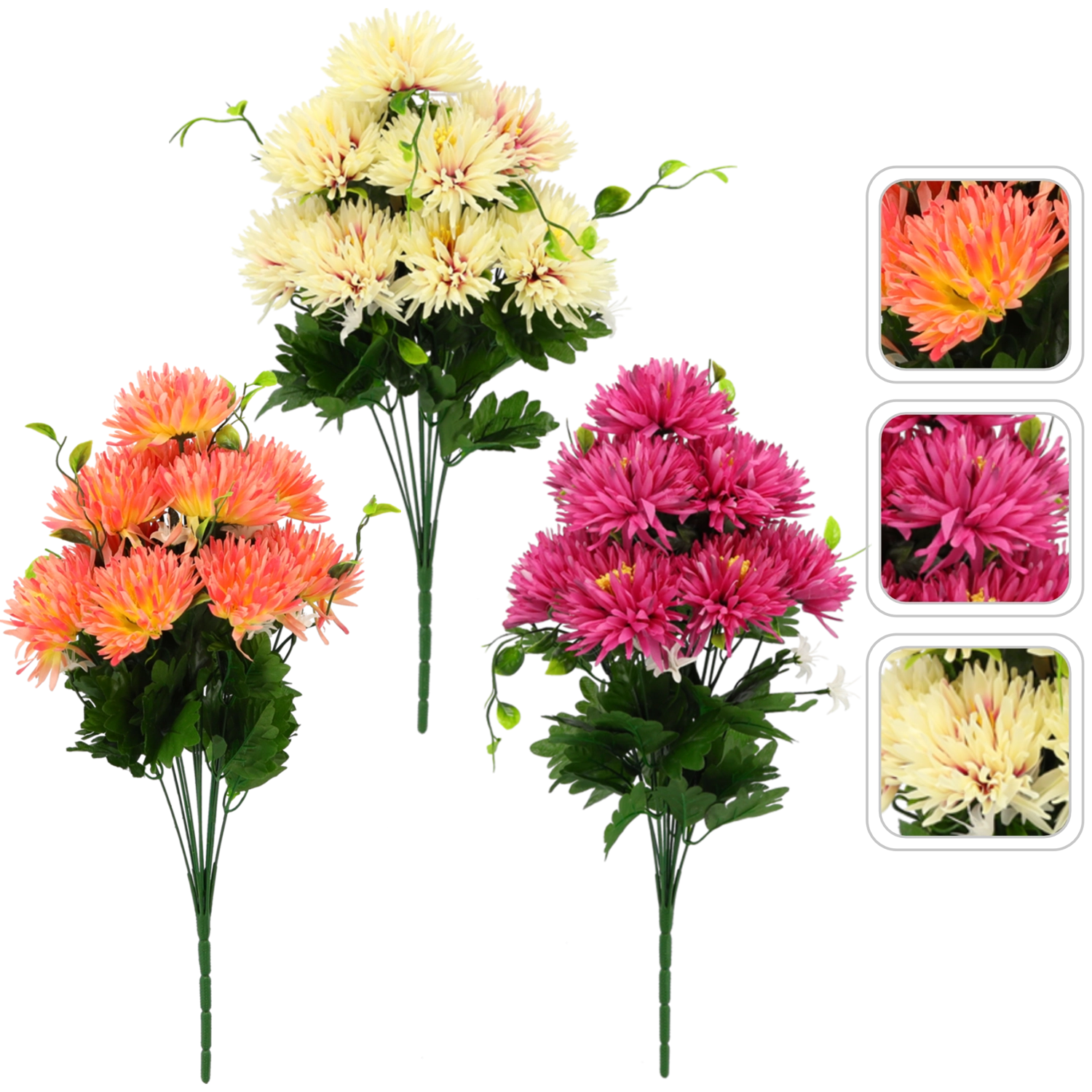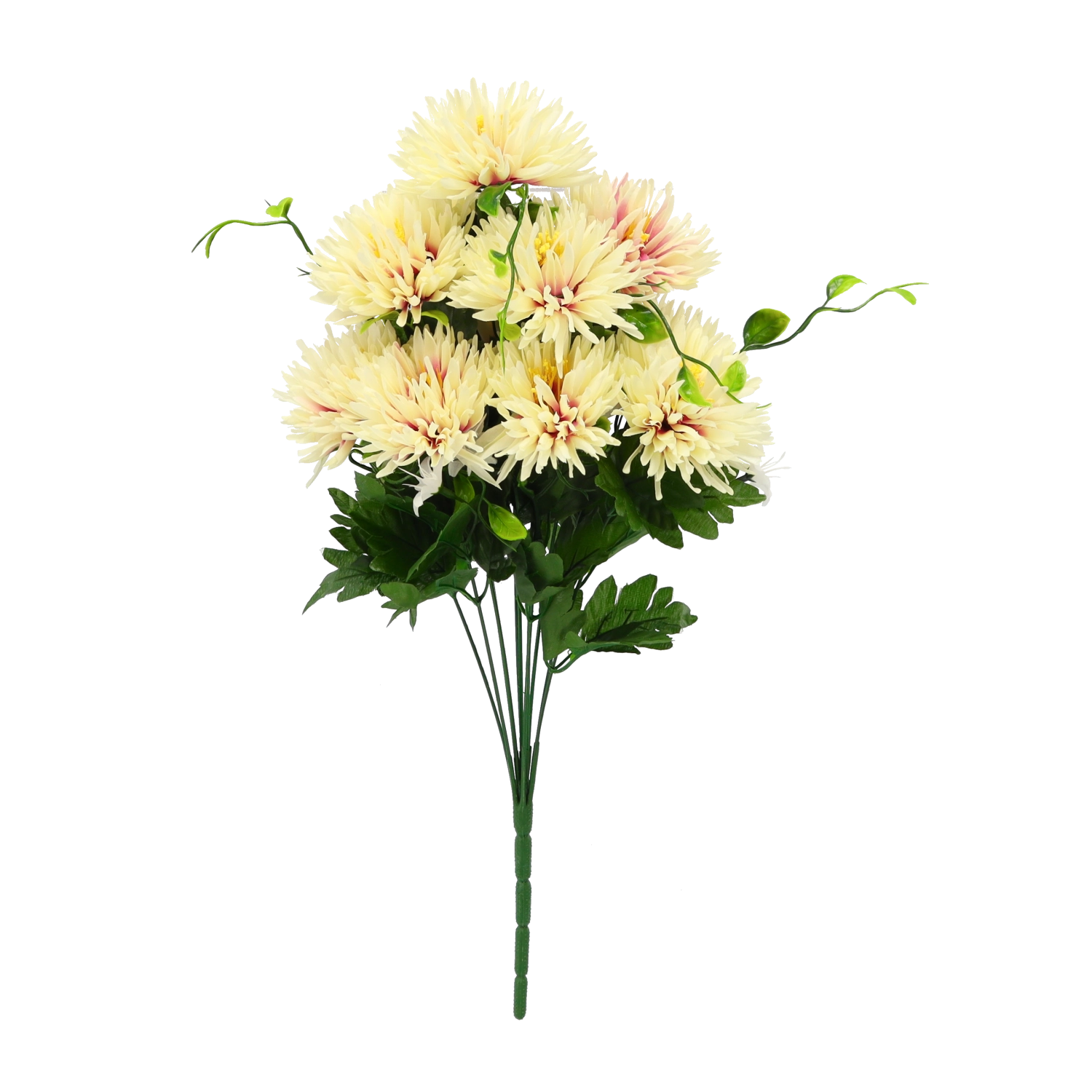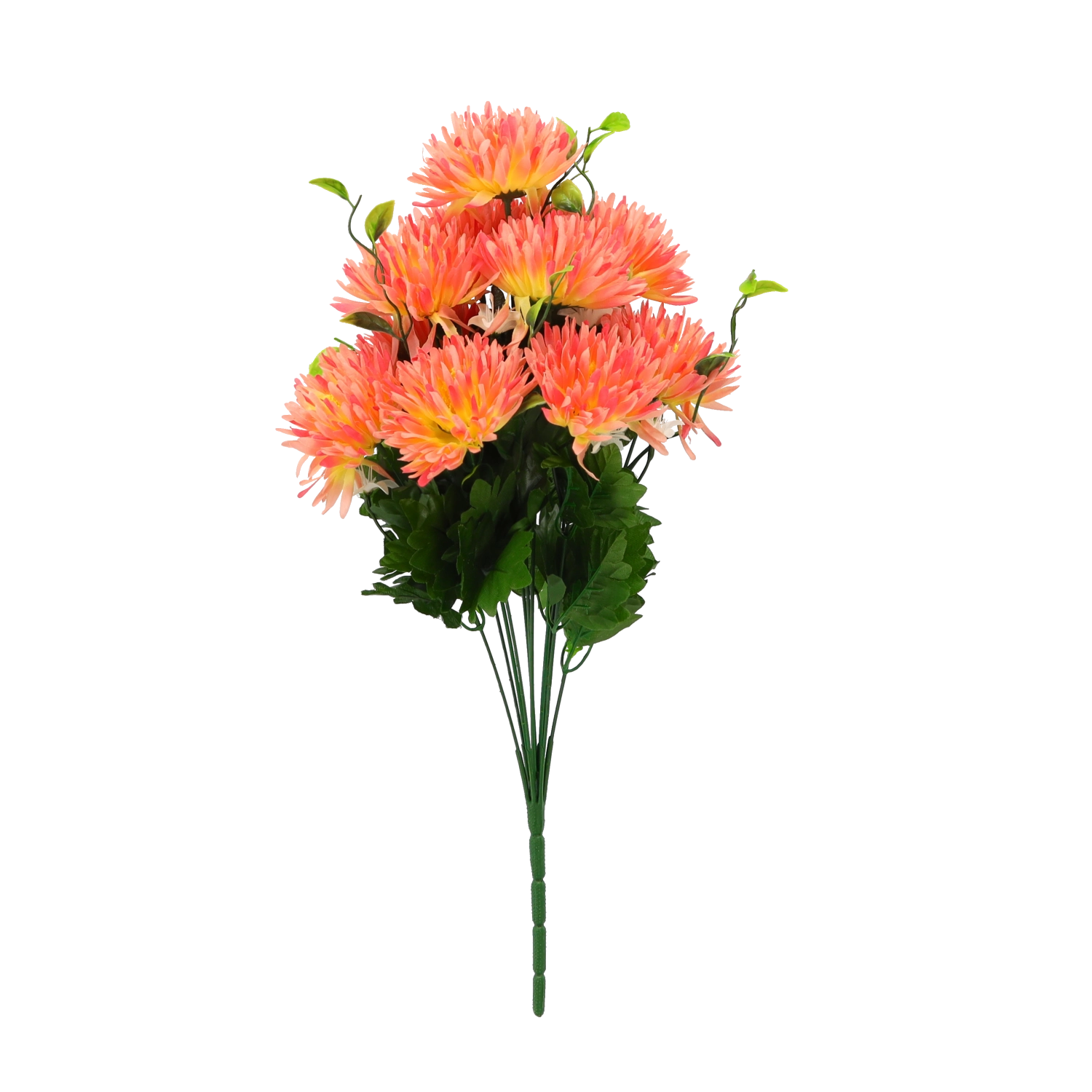 Eleganten umetni šopek krizantem prinaša lepoto narave brez vzdrževanja v vsak interier. Zahvaljujoč realistični izdelavi, bogatim cvetnim glavicam in mešanici barv se odlično poda tako v klasične kot moderne aranžmaje. Odporni materiali zagotavljajo dolgotrajen svež videz in enostavno uporabo v vazi, dekoracijah ter darilnih kompozicijah.